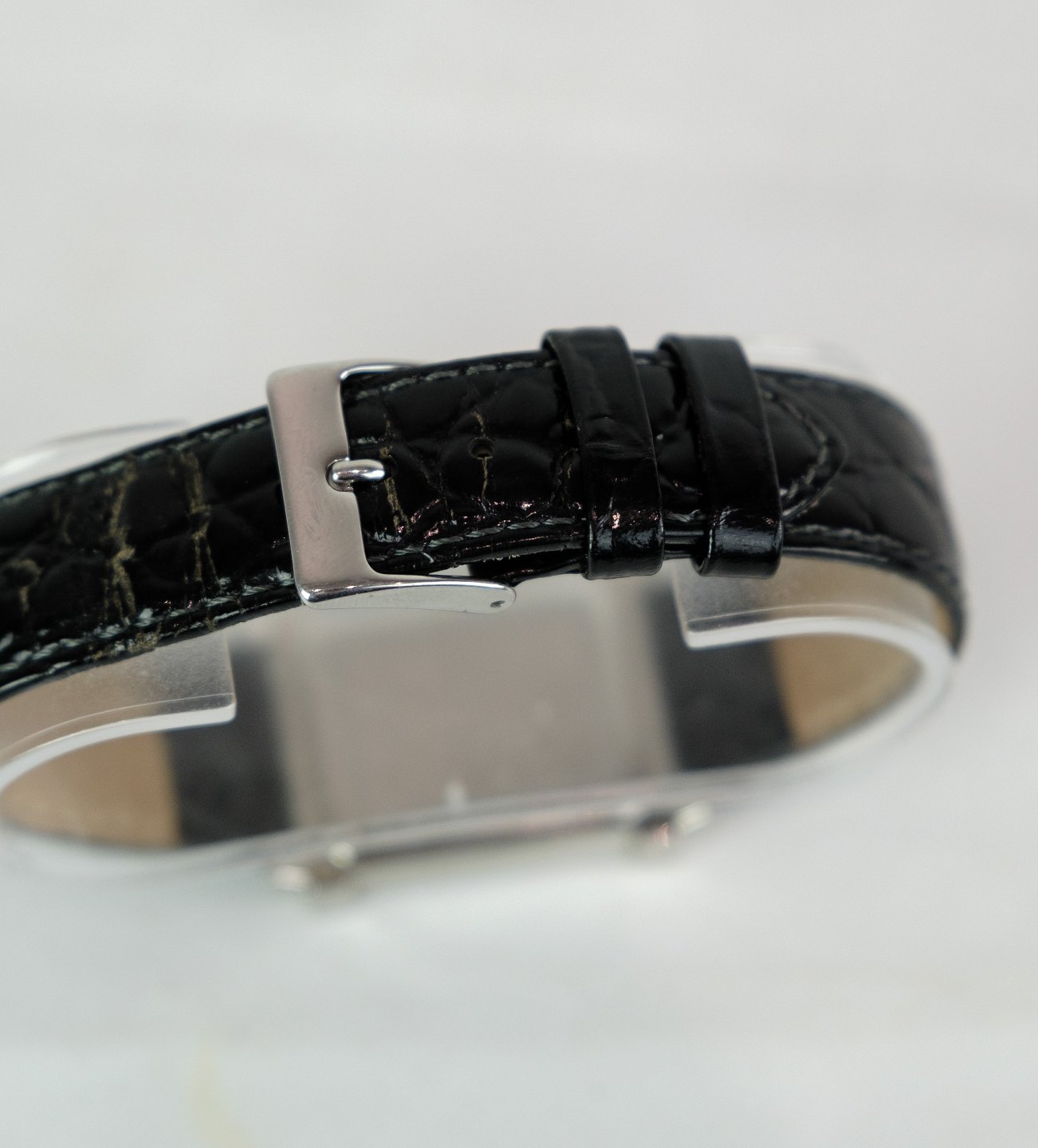 SoldChristina London women's watch black crocodile leather strap with white dial with 0.03 carat diamonds.