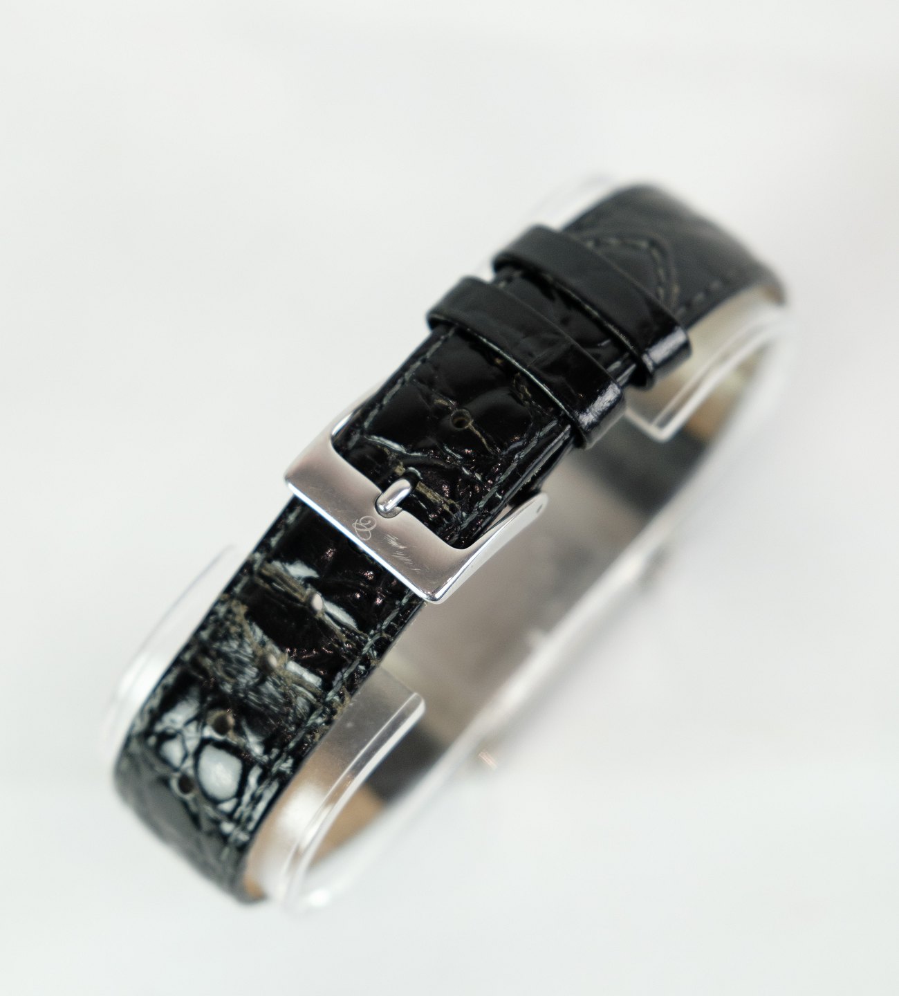 Christina London women's watch black crocodile leather strap with white dial with 0.03 carat diamonds.