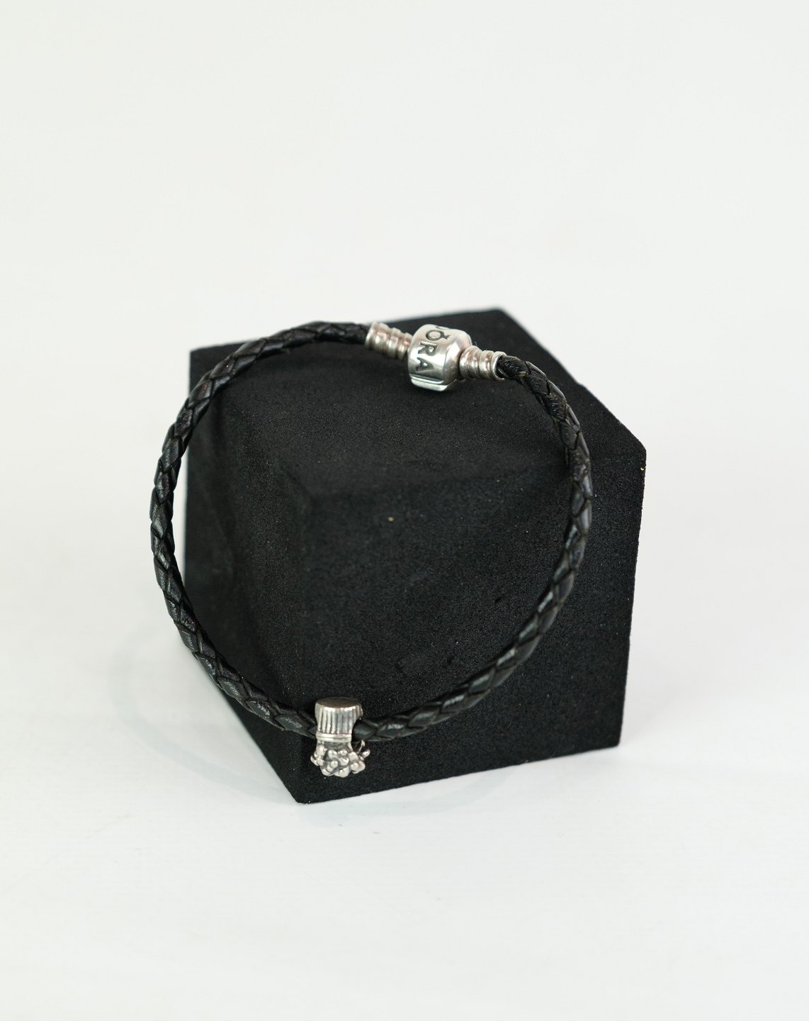 Armbånd, Pandora, sort flet, 925 sterling sølv, original lås