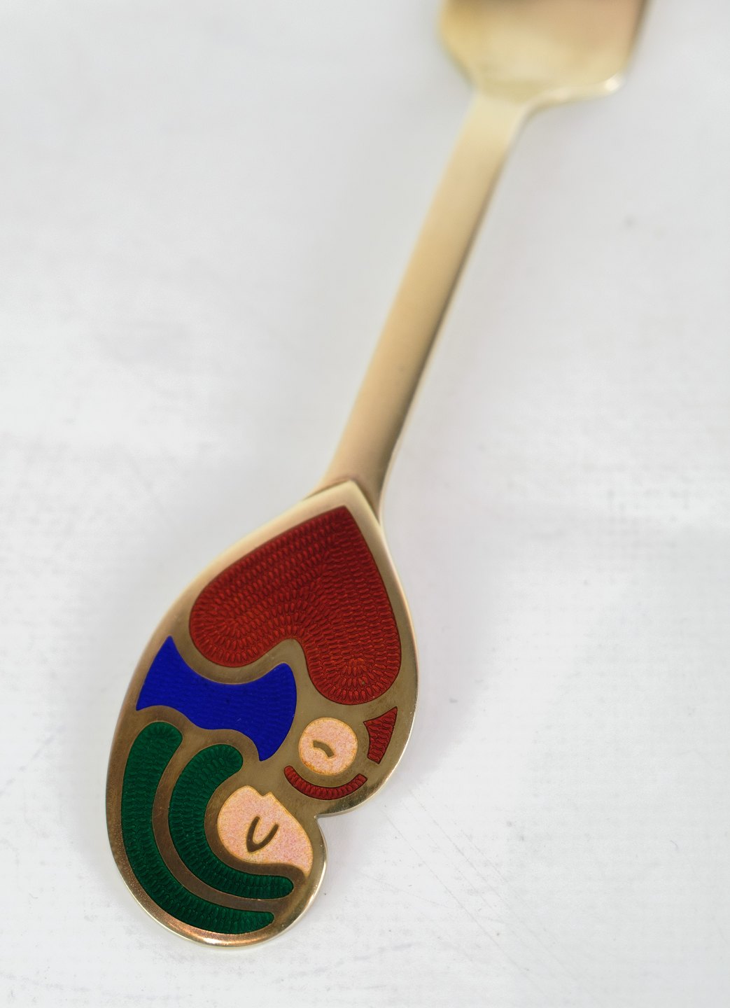 Michelsen juleskeen i 1968 er lavet af forgyldt sterling sølv og har et flot motiv af Madonna og Barnet eller et Moders Hjerte, som er skabt af kunstneren Henry Heerup. Skeen er i pæn stand og vil være et værdifuldt og unikt supplement til ethvert juletræ. Michelsen er kendt for at skabe smukke, håndlavede julegaver af høj kvalitet, og denne juleske er ingen undtagelse. Det forgyldte sterling sølv giver skeen et elegant look, der vil gøre indtryk på alle, der ser den. Med sin smukke kunstneriske detaljer og håndlavede kvalitet vil denne juleske blive en værdsat del af dit juletræ i mange år fremover.