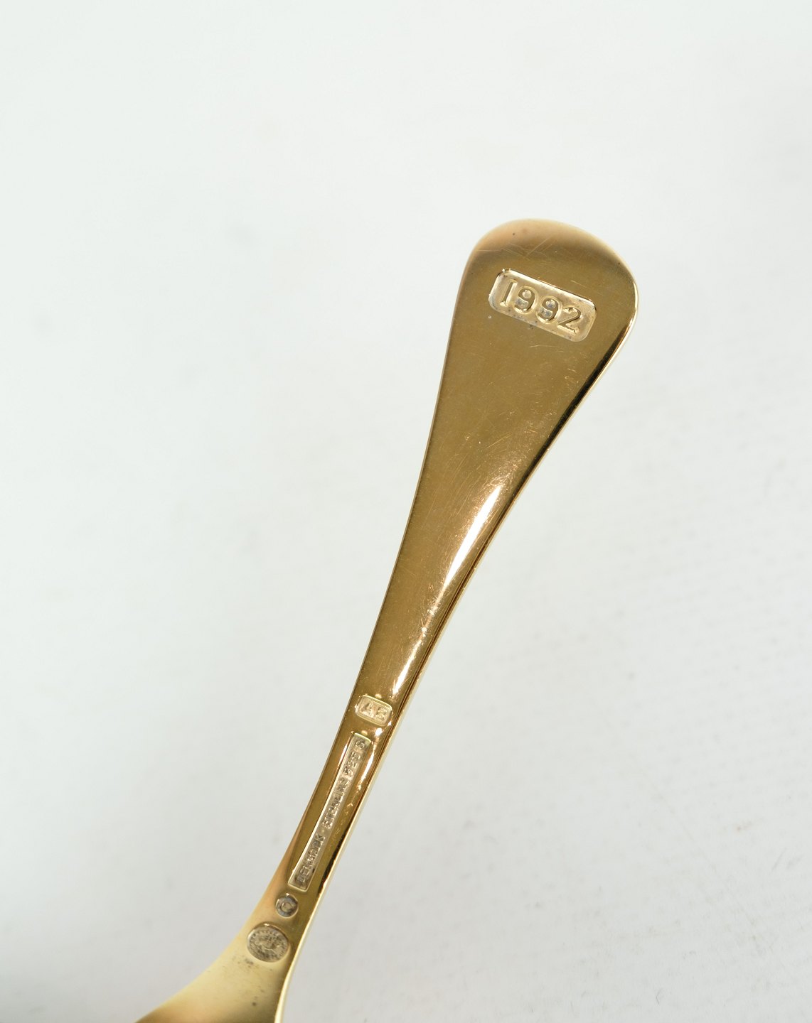 Georg Jensen year 1992 has a beautiful floral motif in gilded sterling silver. The annual spoon from Georg Jensen is an annual tradition, where each design is specially created for the year in question. This makes each annual unique and sought after by collectors. The 1992 model is part of a long series of Georg Jensen vintage spoons that started in 1971 and continued until 2004. The beautiful floral motif is made with the highest quality sterling silver, which is gold-plated to give it extra shine and luxury. The annual spoon is a perfect gift idea for a special occasion or as a valuable addition to a collection of Georg Jensen jewelery and design objects.