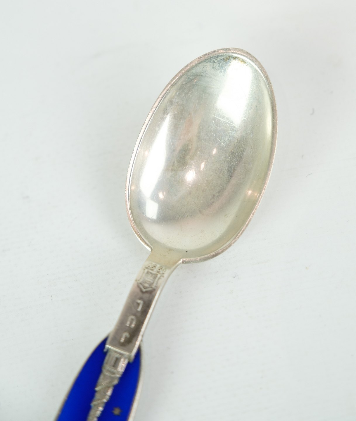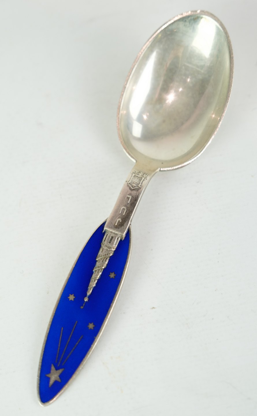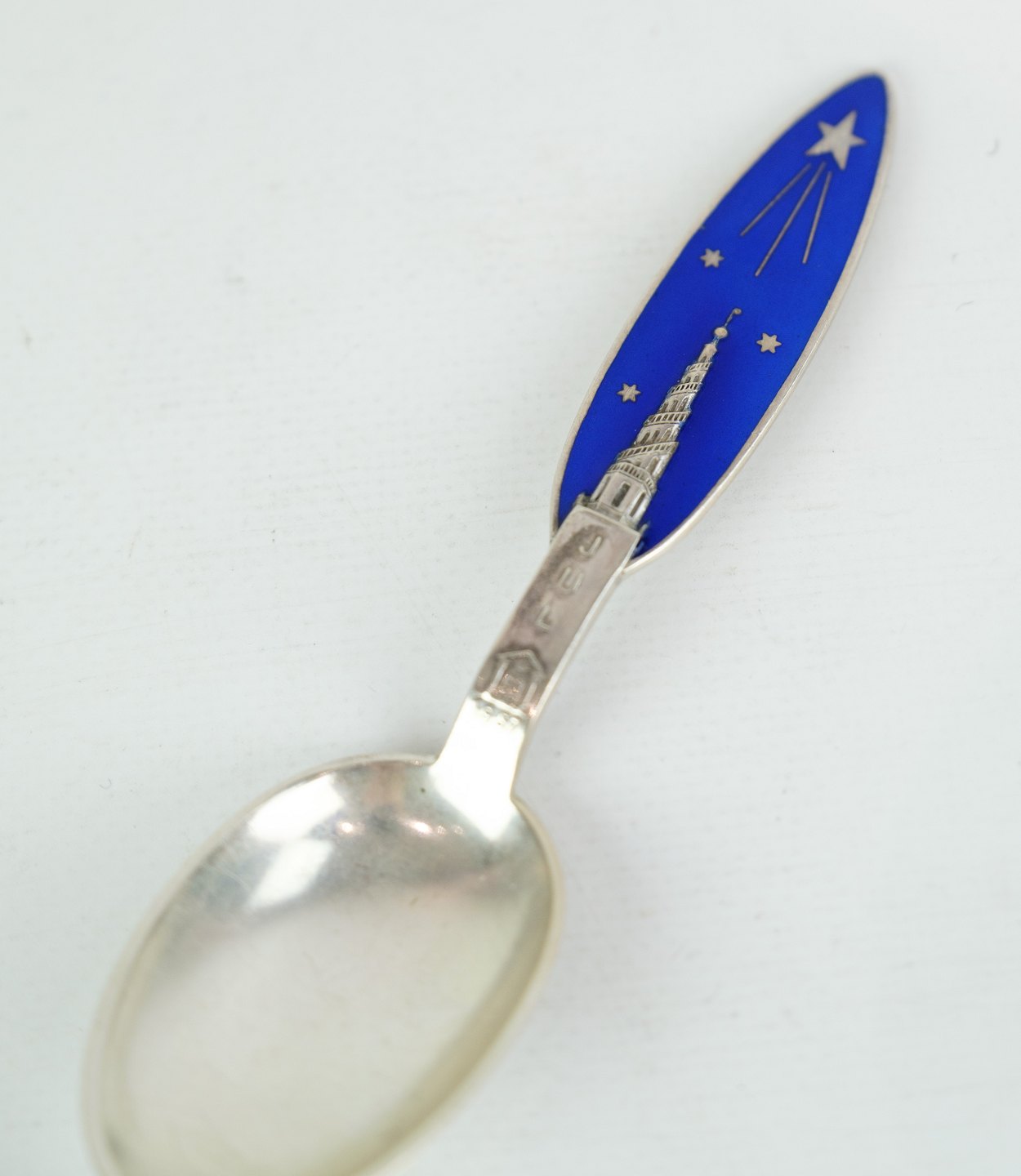 SoldChristmas box in P. Hertz with a church spire and blue enamel from 1957 stamped with three-towered silver and the word "Christmas" on the front.