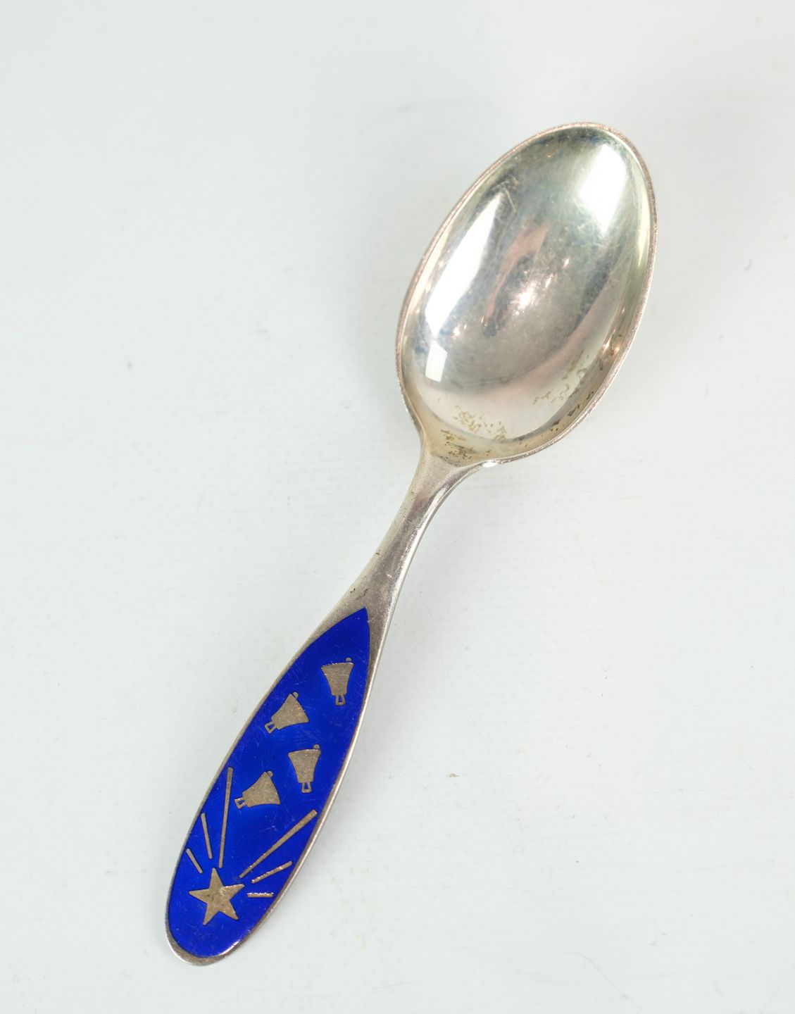 Christmas box, P. Hertz, sterling silver, blue enamel