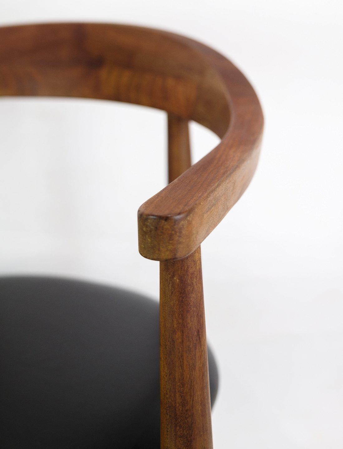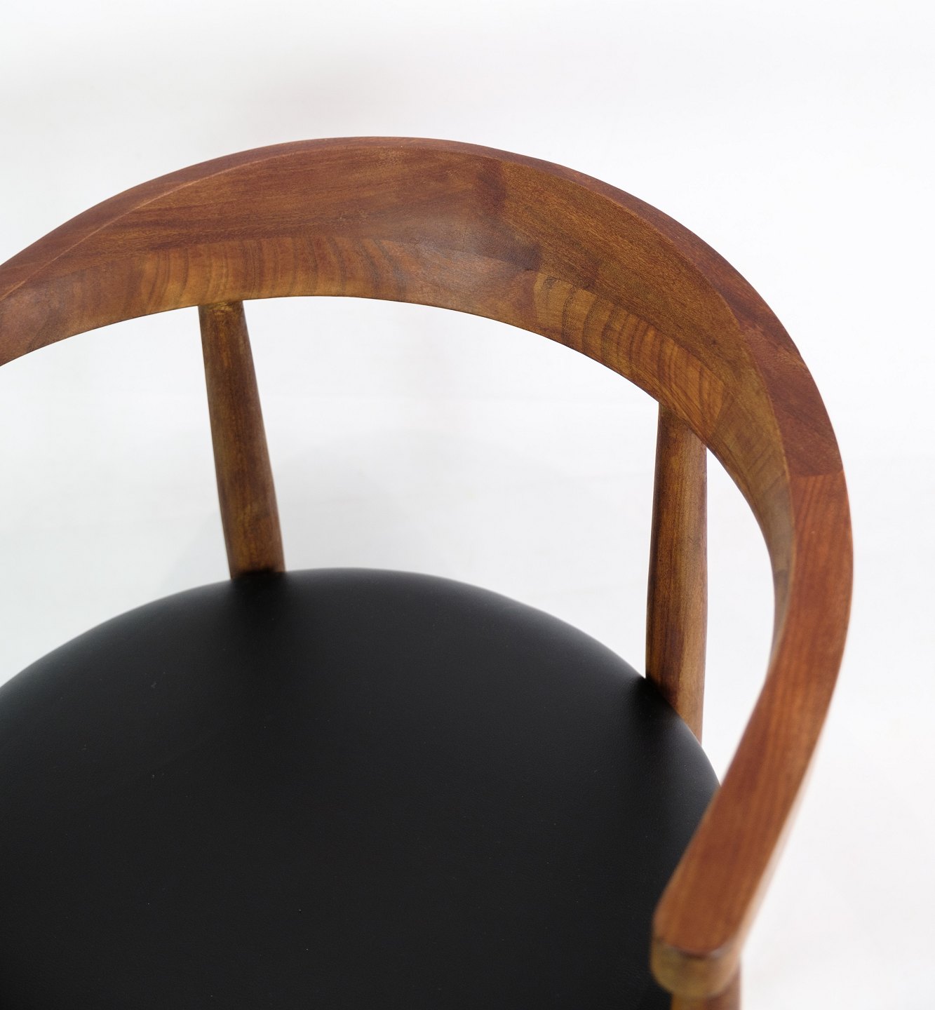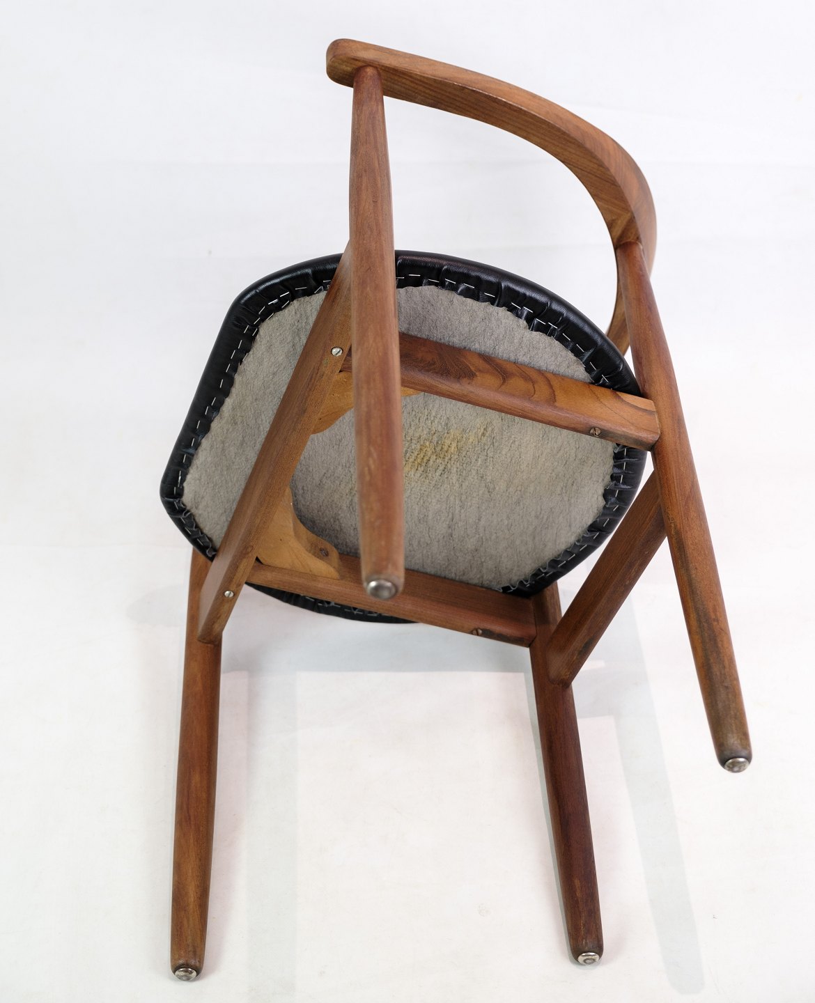 Armchair, designed by Bondo Graversen with solid teak frame and seat upholstered in black artificial leather. A very fine and charming chair from the 1960s, which brings a lot of history into the home.