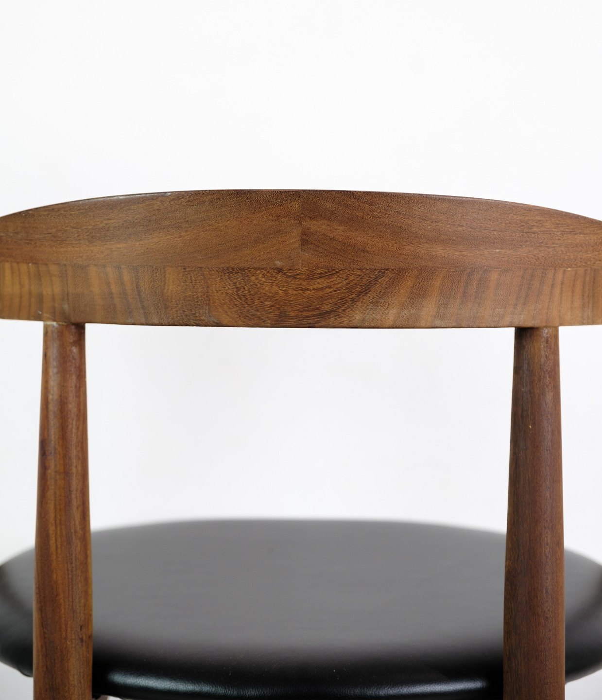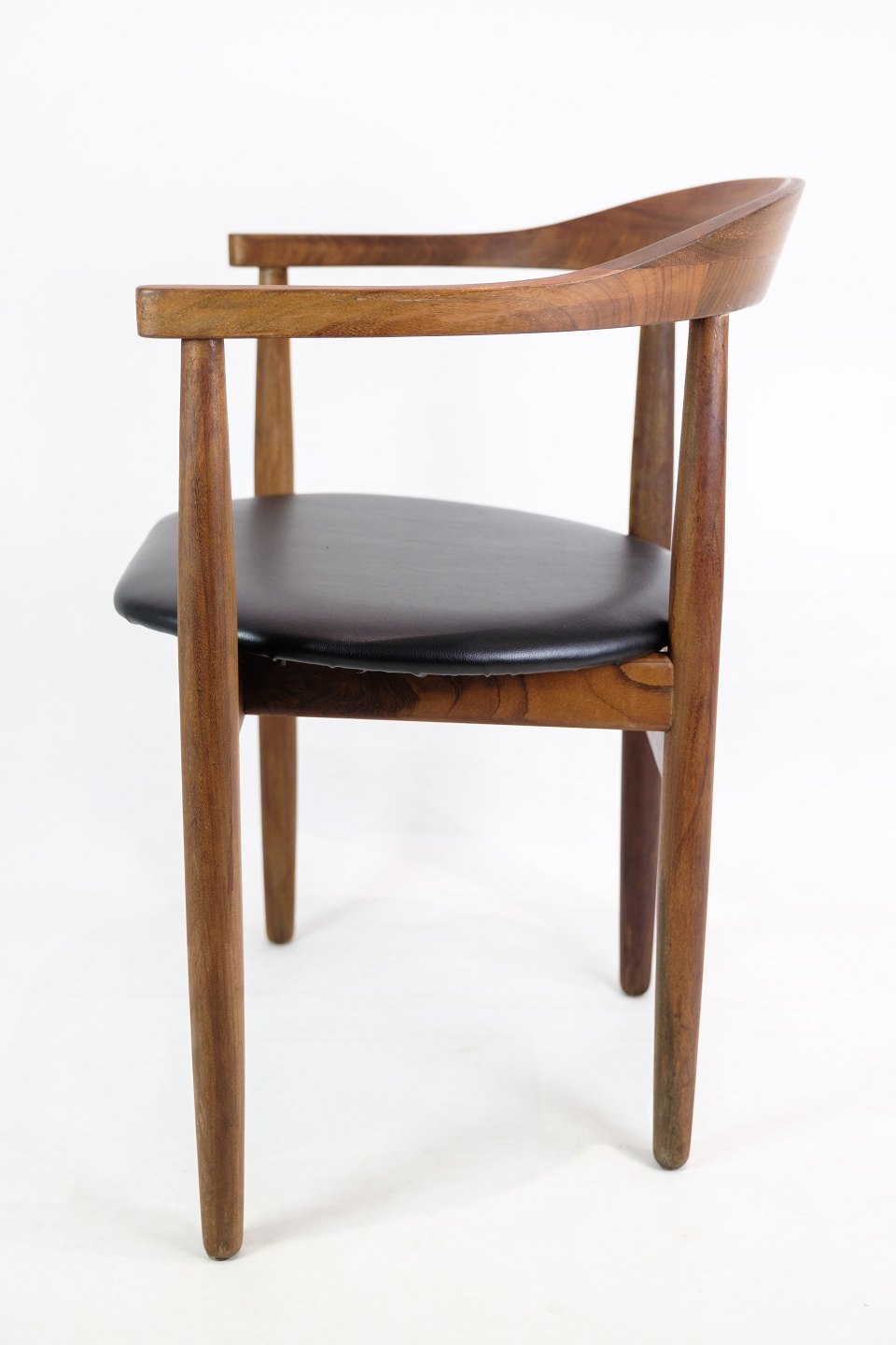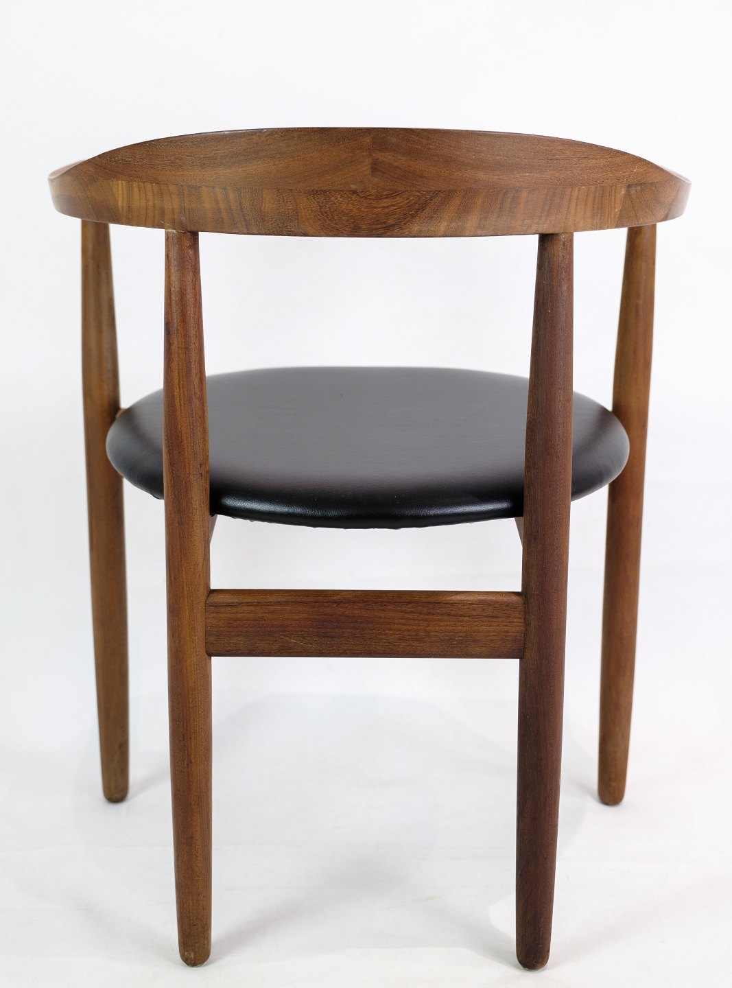 Armchair, designed by Bondo Graversen with solid teak frame and seat upholstered in black artificial leather. A very fine and charming chair from the 1960s, which brings a lot of history into the home.