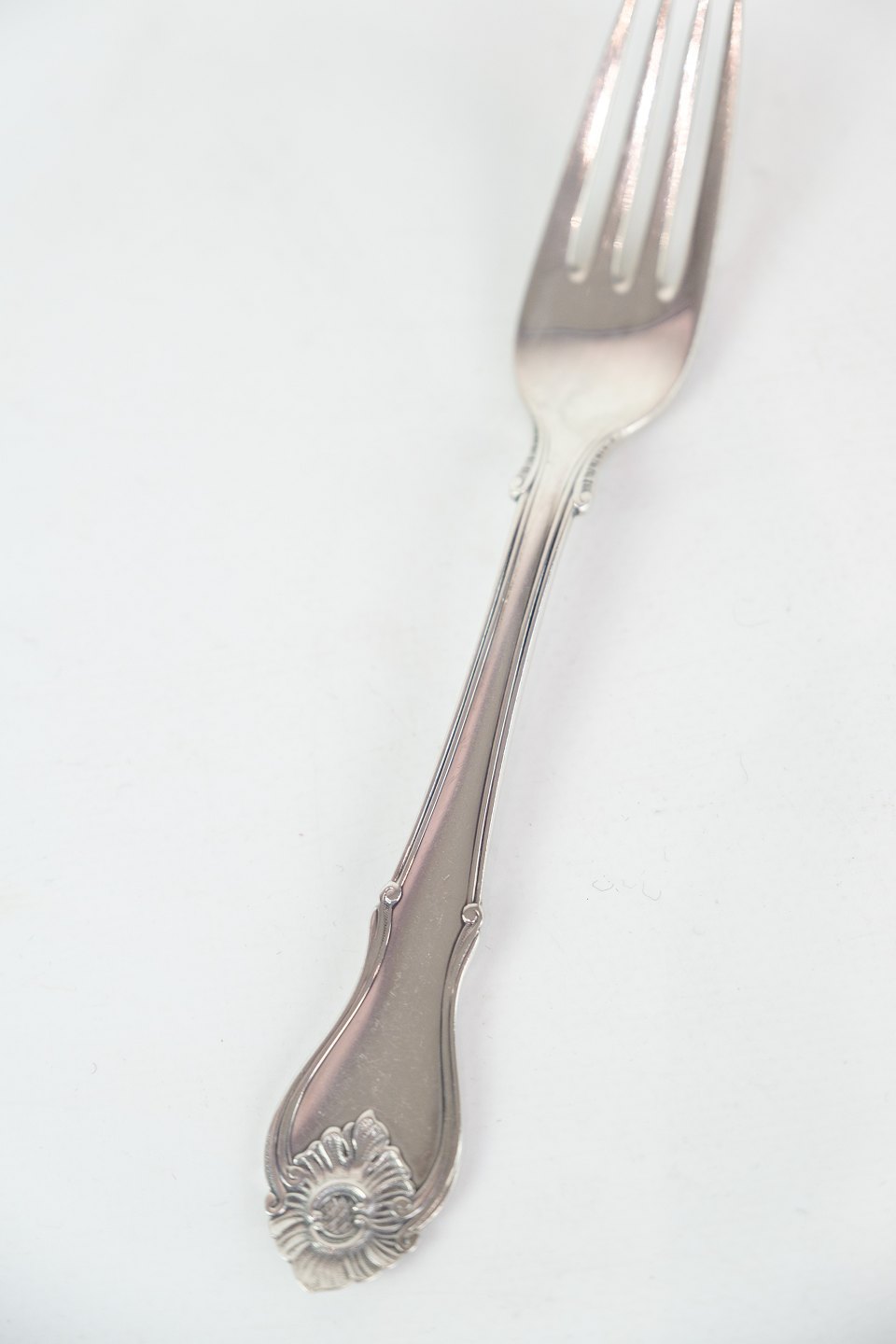 Lunch fork in rococo of Danish silver cutlery in the triple tower 830s, made at Horsens silverware factory.