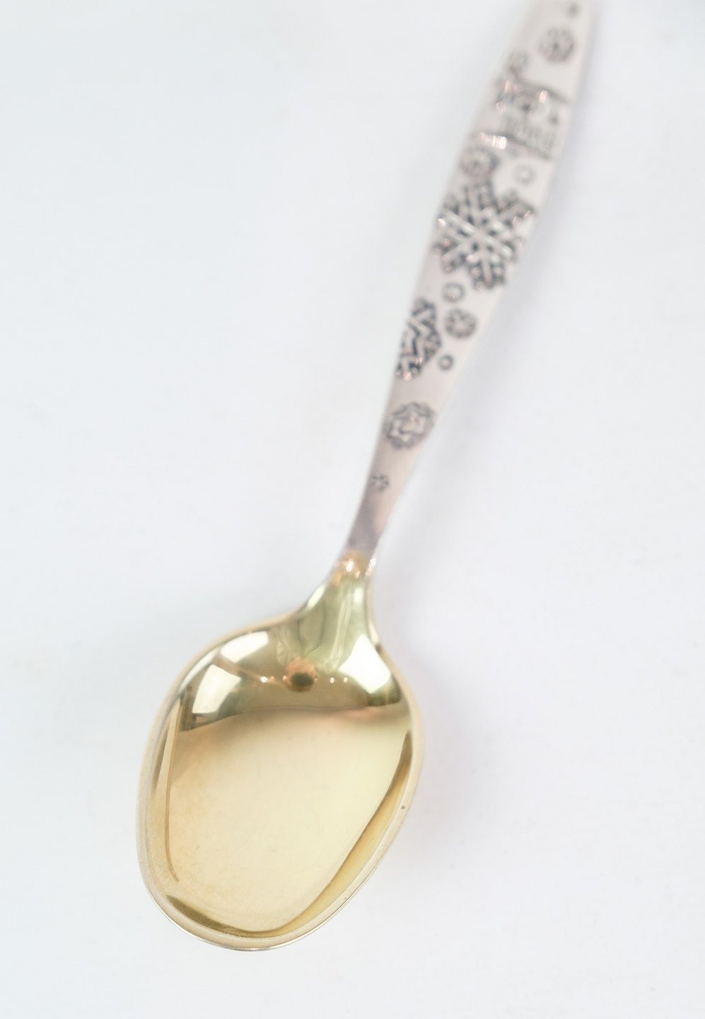 Juleske i delvist sølv forgyldt med motiv af snefnug fra år 1968.
