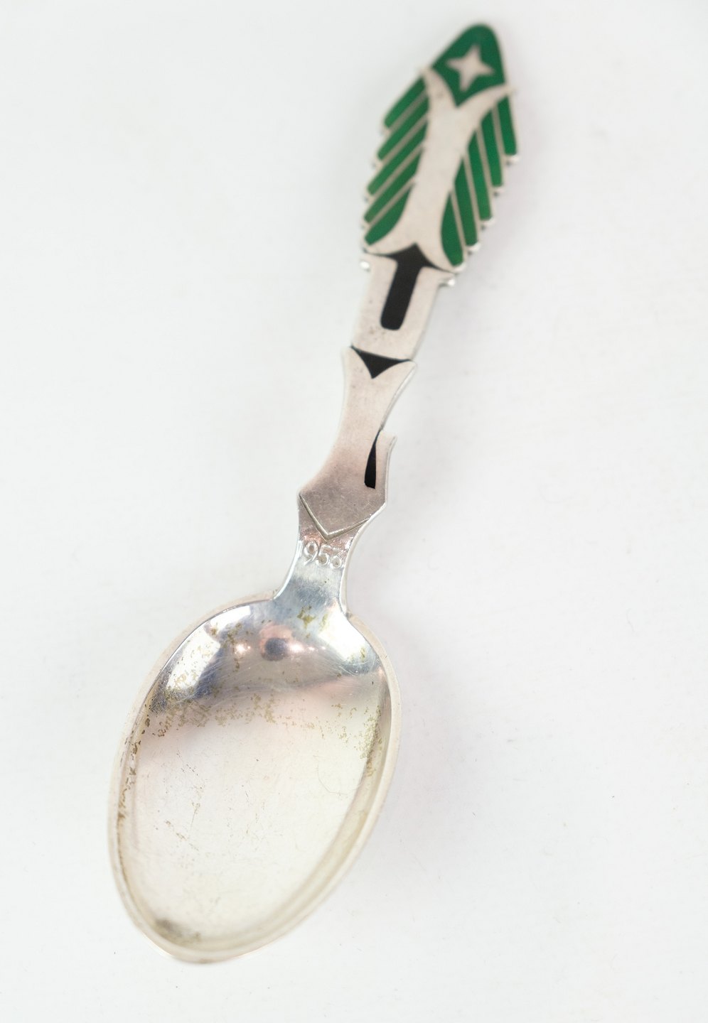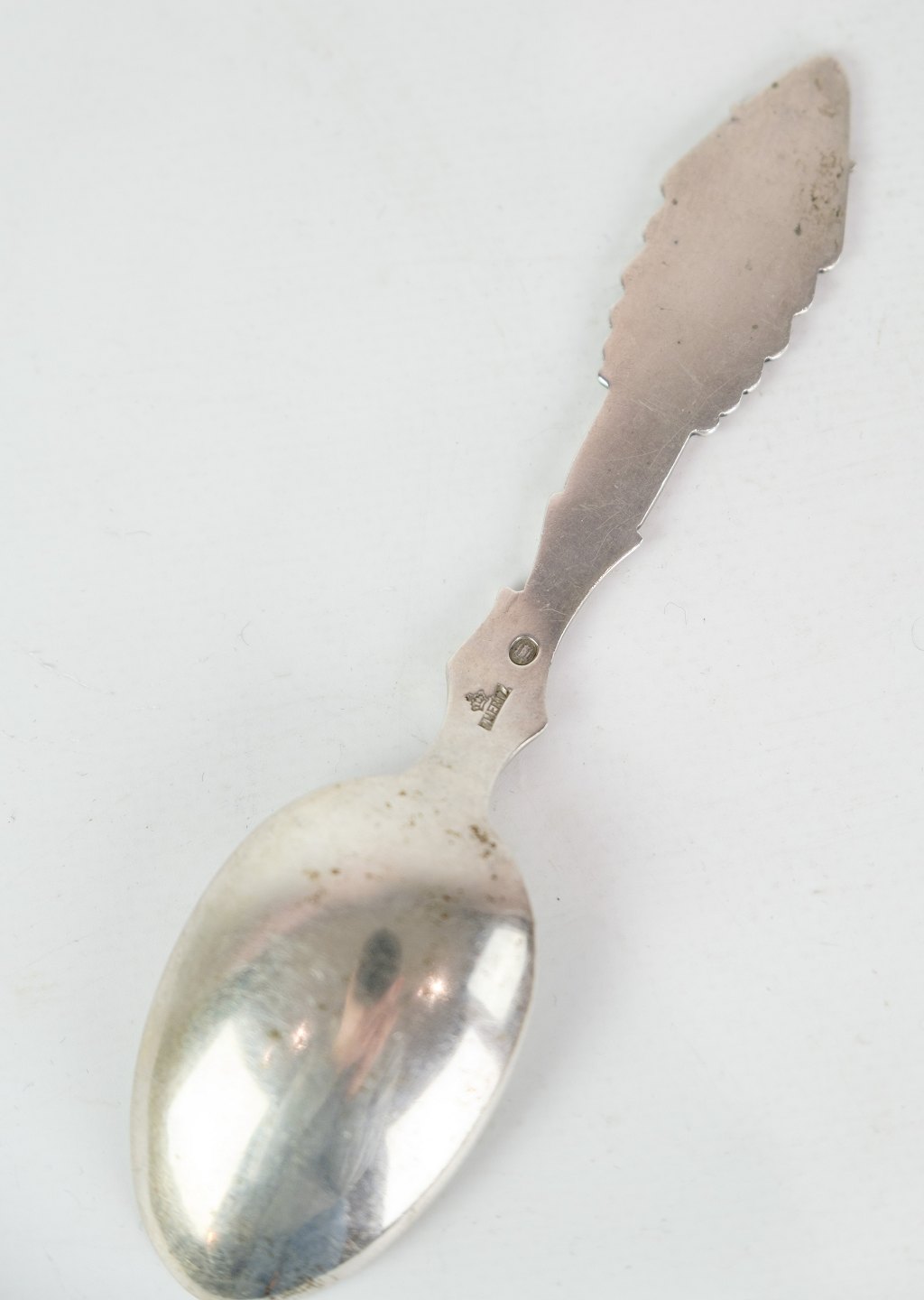 Christmas spoon from the 830s in the wooden tower with a motif of a Christmas tree with a star from the year 1953