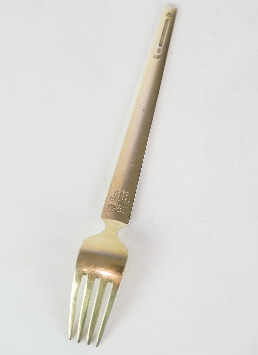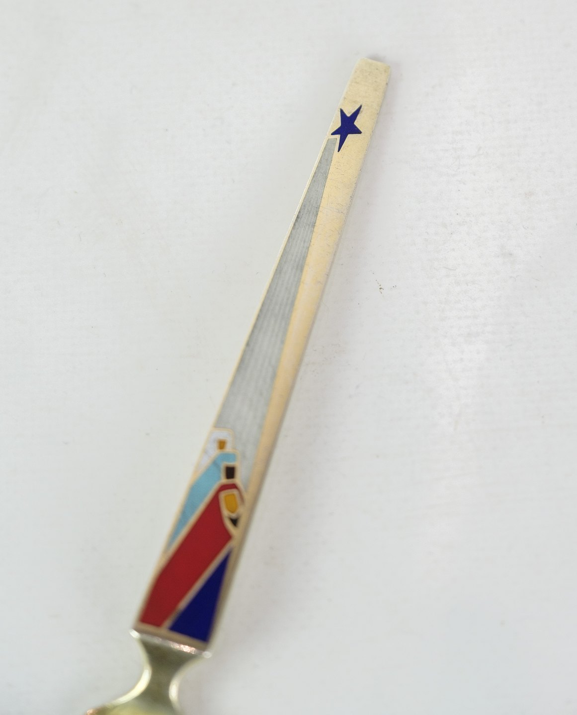 Julegaflen 1958 Titel "Østens vise mænd" Forgyldt sølv med emaljedekoration designet af kunstneren Karl Gustav Hansen hertil produceret af Anton Michelsen.
