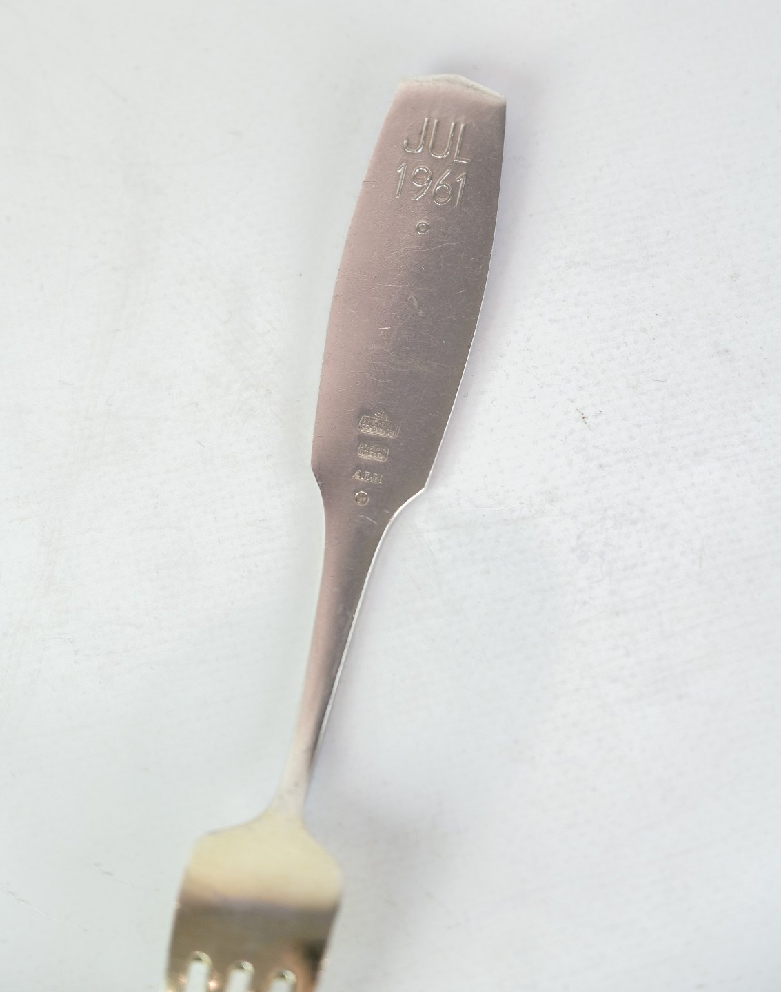 Anton Michelsen Julegaffel med titlen Orgenpiber af kunsteren Arne L. Hansen i året 1961. julegaflen er i forgyldt sølv med emaljedekorationer blev først skabt hos sølvfirmaet A. Michelsen.