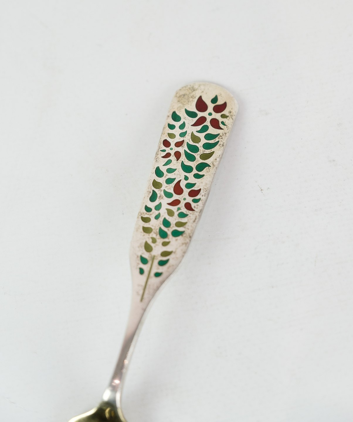 Anton Michelsen forgyldt sterlingsølv julegaffel fra 1955 er et smukt og eksklusivt stykke sølvtøj, designet af Palle Pio. Gaffelen er lavet af høj kvalitet sterlingsølv og er forgyldt med guld, som giver den en glansfuld finish. Det elegante design med de fine detaljer gør denne julegaffel til et must-have til din julebordssamling. Brug den til at spise julemaden med stil og elegance, eller lad den være en del af din juledekoration. Uanset hvad du vælger, vil Anton Michelsen forgyldt sterlingsølv julegaffel fra 1955 være en værdifuld og unik tilføjelse til dit hjem.