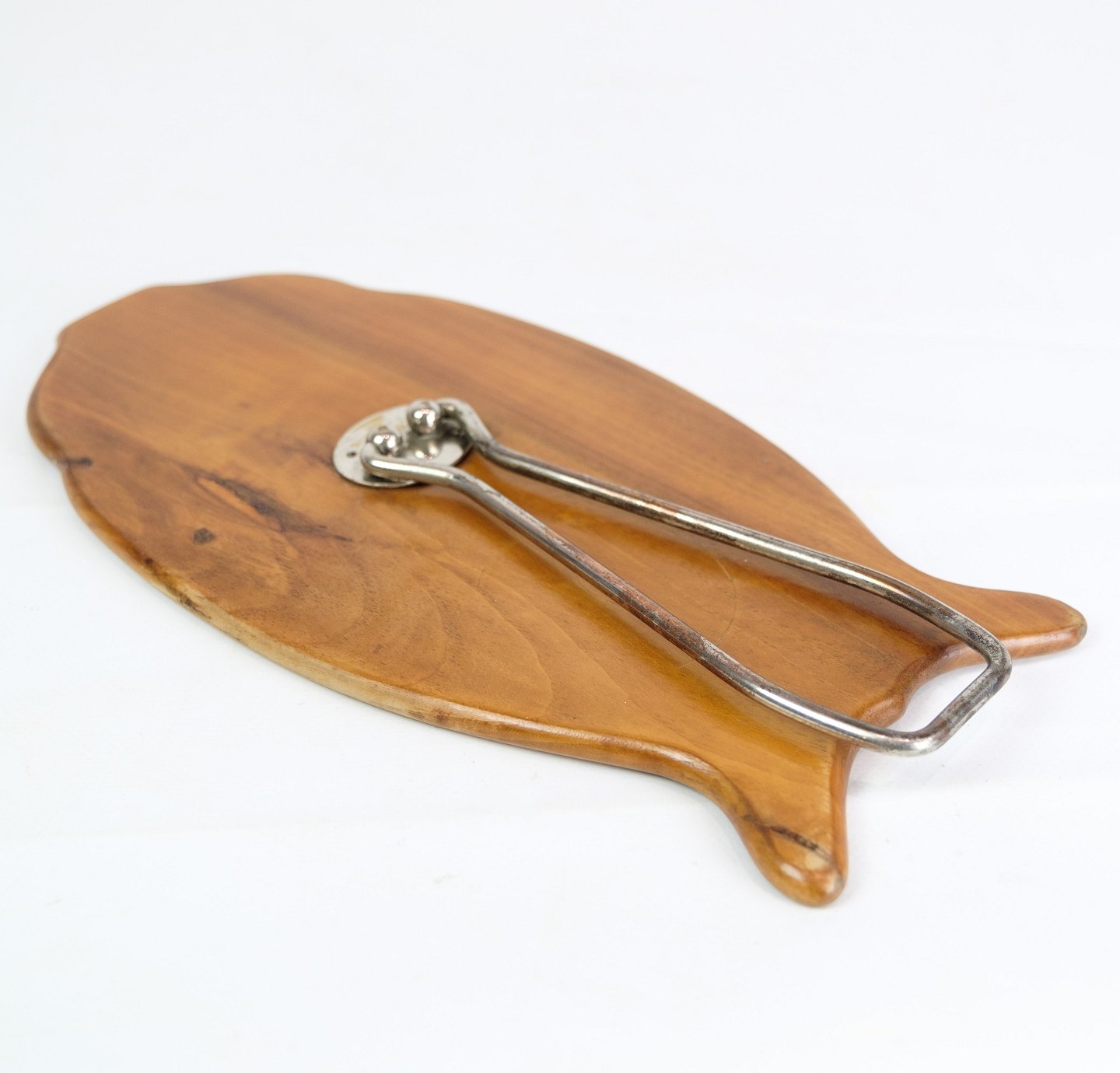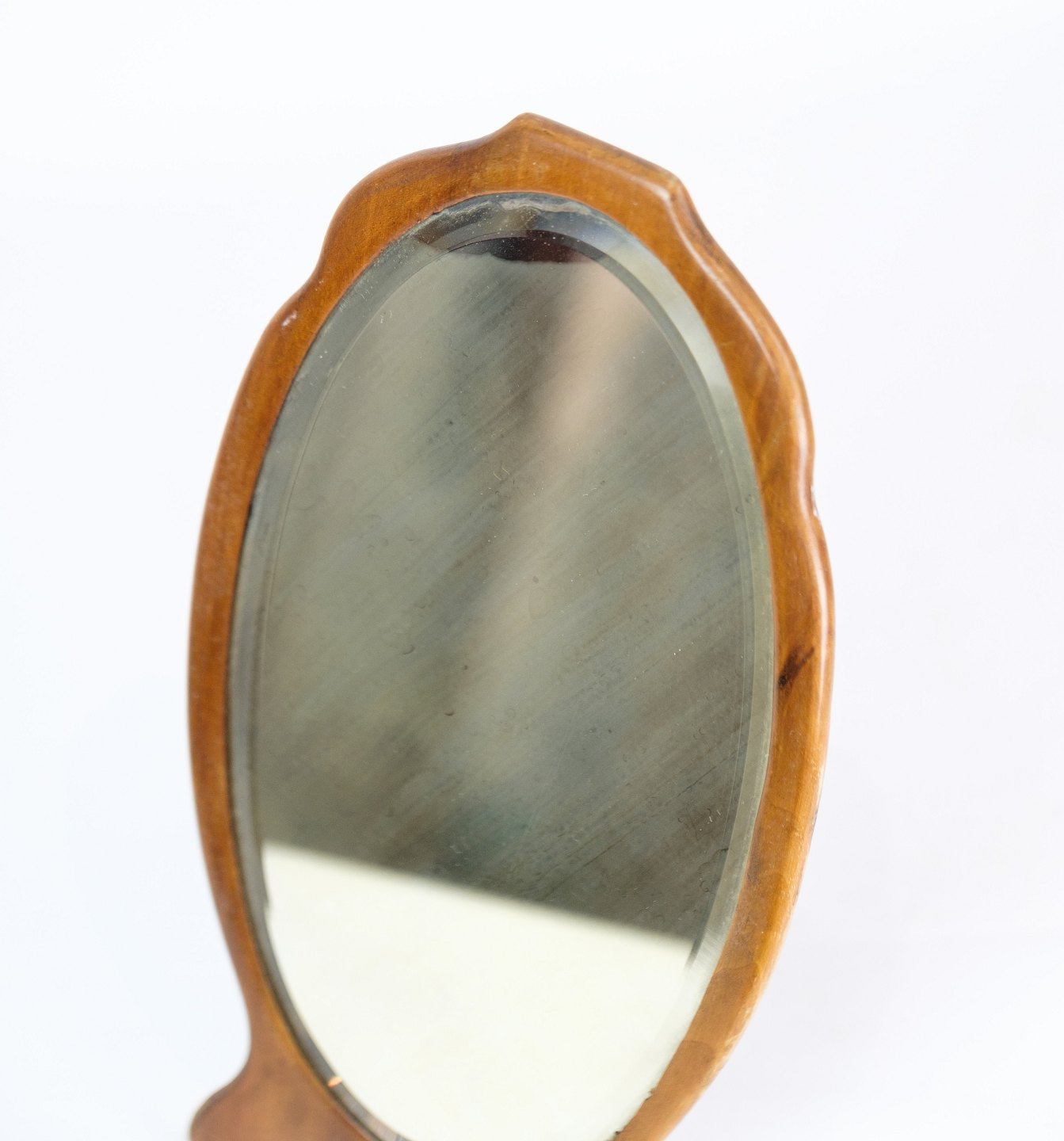 Small table mirror in walnut wood with small metal foot from around the 1880s.