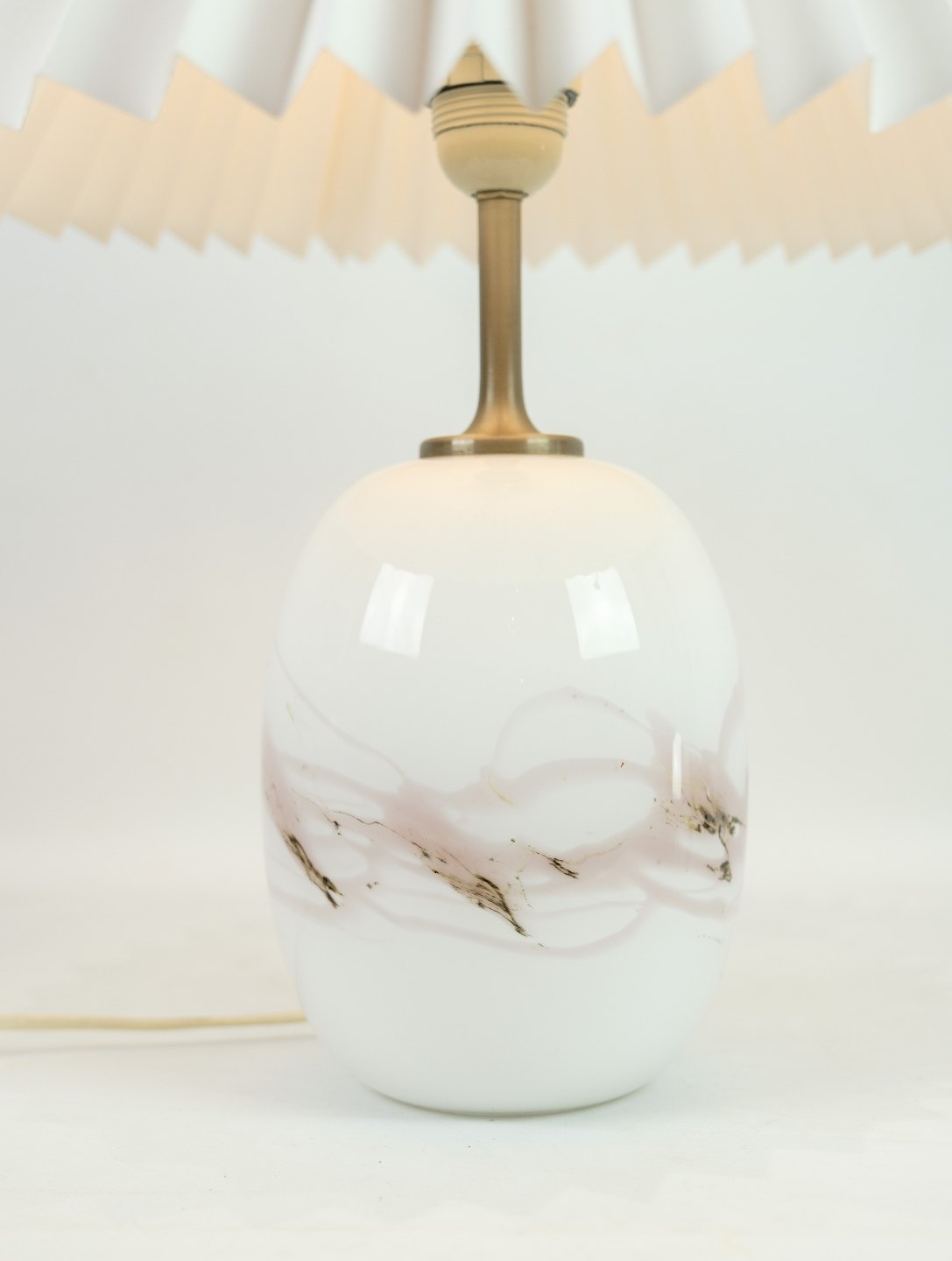 Table lamp, model Sakura, designed by Michael Bang with white opal glass with pink decoration.