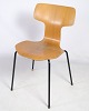 Set of four, model 3103, 'T-chair', by Arne Jacobsen 1902-1971 with bent veneered oak shell, black grooved rubber-wrapped steel tube frame. Manufactured at Fritz Hansen, 1960s. early model. Has traces of use, marks, edge wear. Can be made in a workshop before purchase. Send us a message. More sets in stock