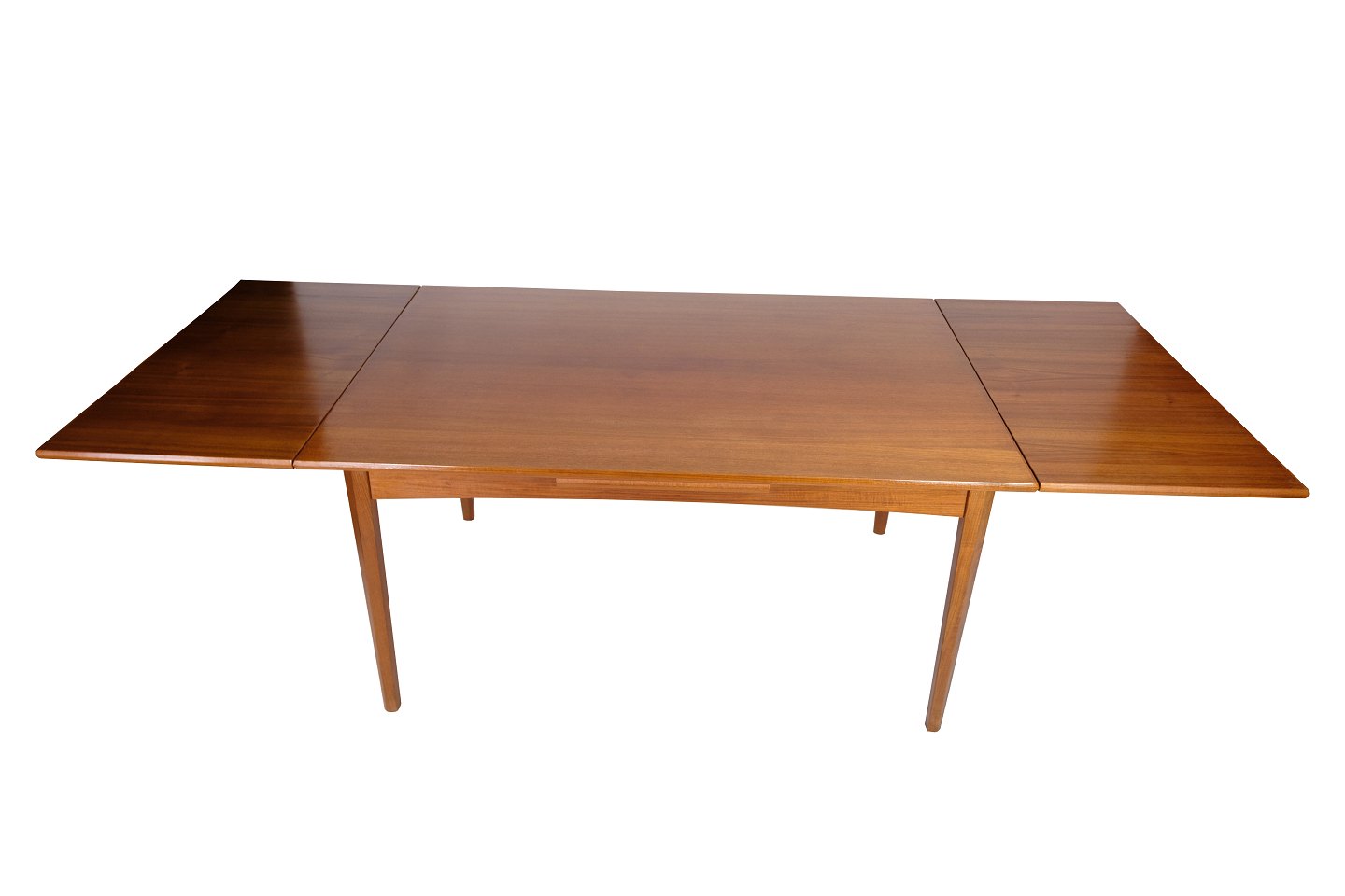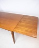 Dette spisebord i teak er et smukt og funktionelt møbel i dansk design fra 1960'erne. Bordet er lavet af højkvalitets teaktræ, som er kendt for sin holdbarhed og naturlige skønhed. Designet omfatter et hollandsk udtræk, som giver mulighed for at forlænge bordet, når der er brug for mere plads til at sidde.