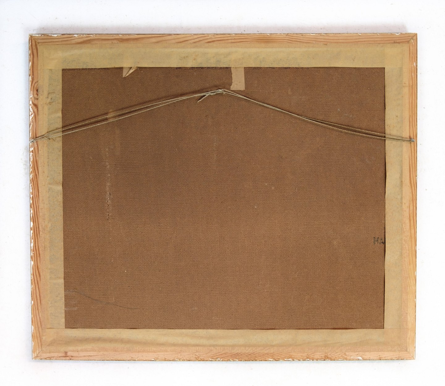 Painting on wooden board in gold frame of agriculture in green colors from around the 1930s.