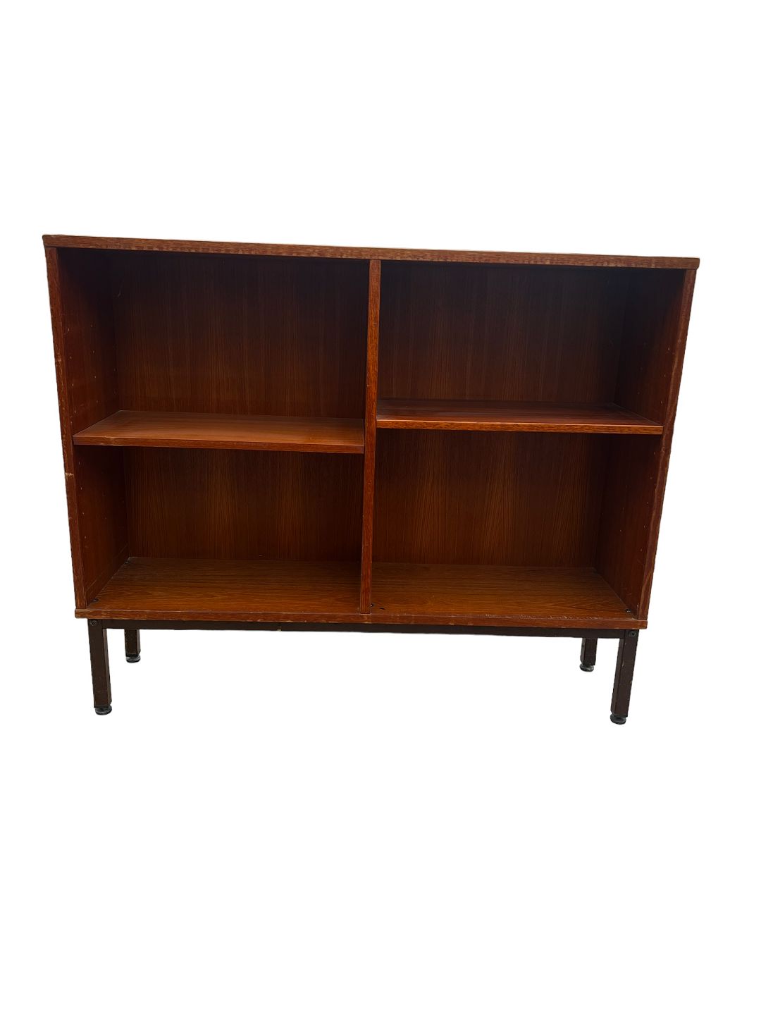 The warm colors and natural beauty of the teak add character to any room, while the slim metal legs give a light and airy look. With its timeless appeal, this bookcase will be an impressive and functional piece of furniture that will fit perfectly into any home.