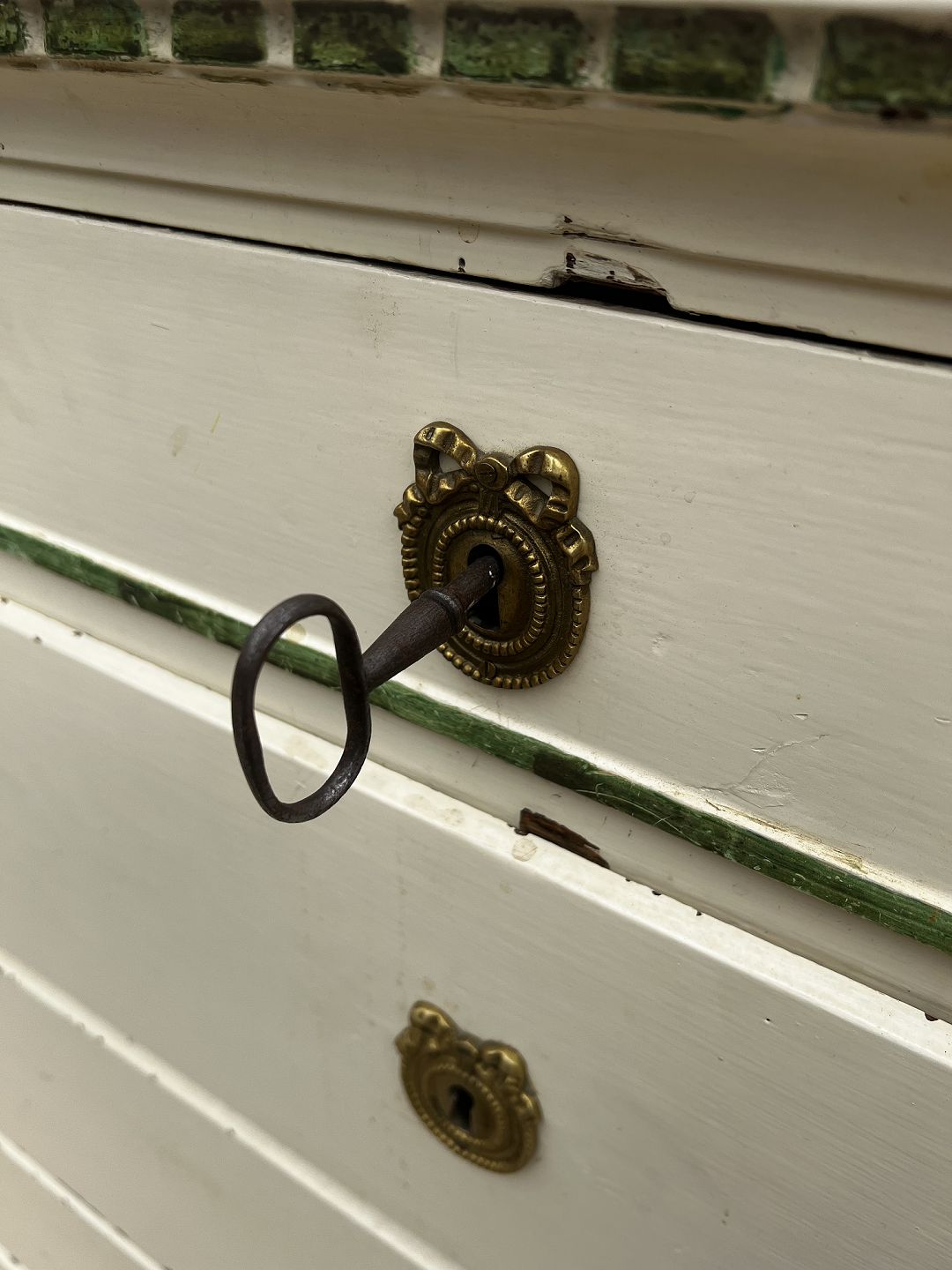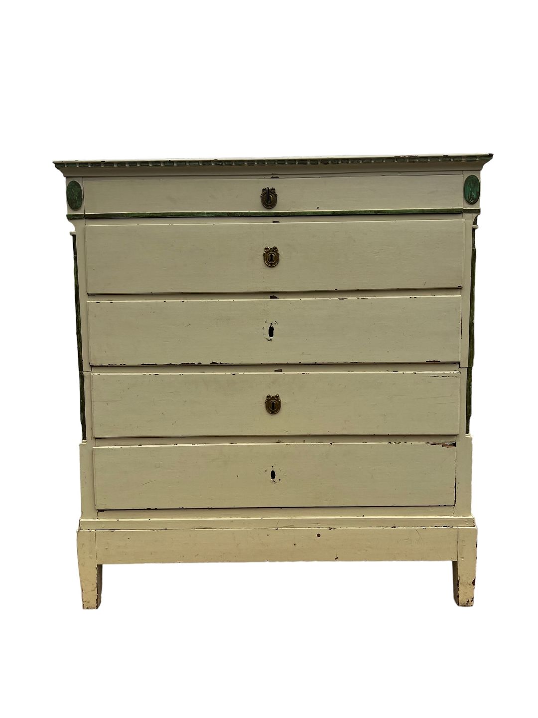 Chest of drawers / Chest of drawers in white painted patinated colors and 5 drawers from the 1820s