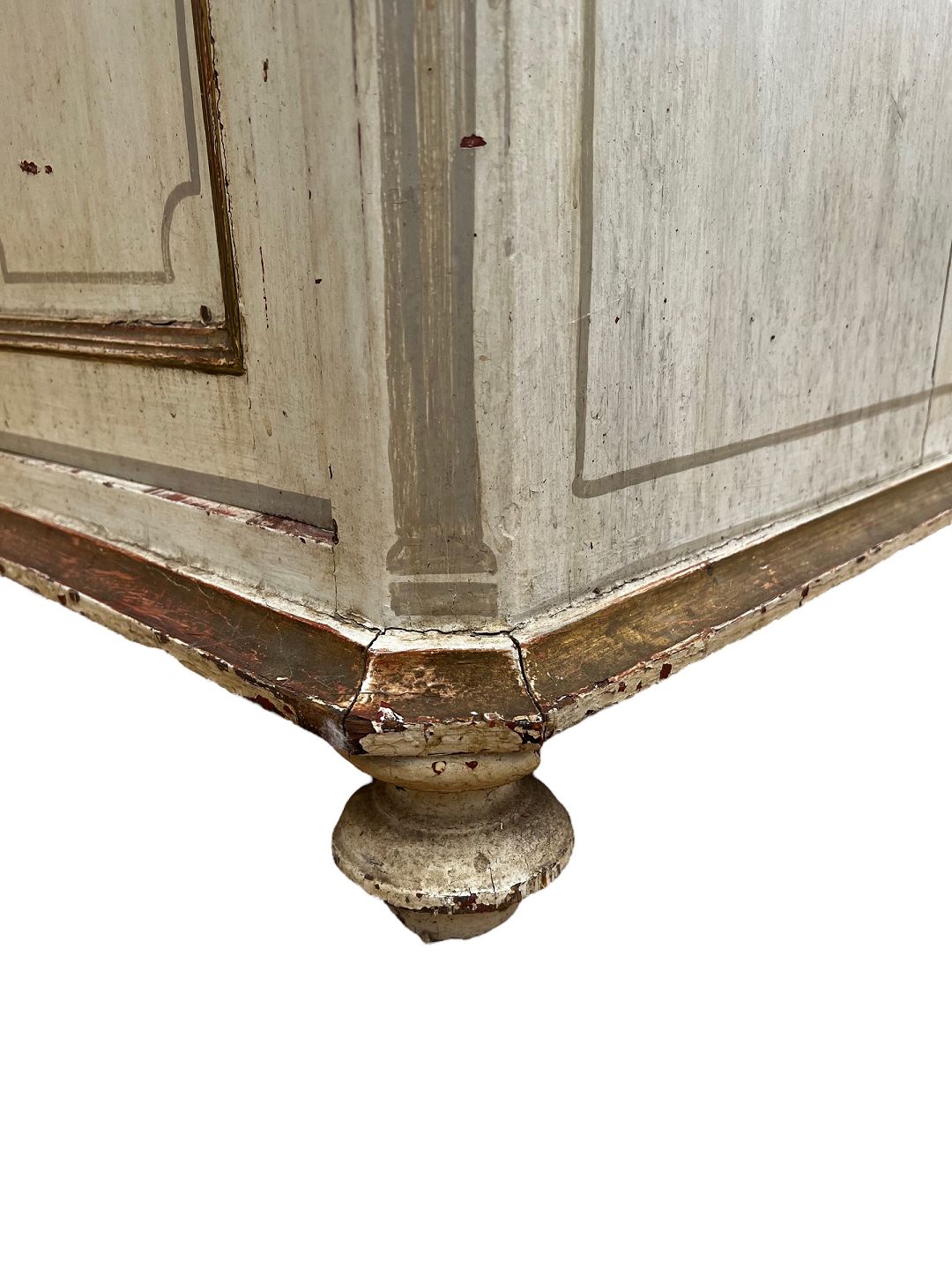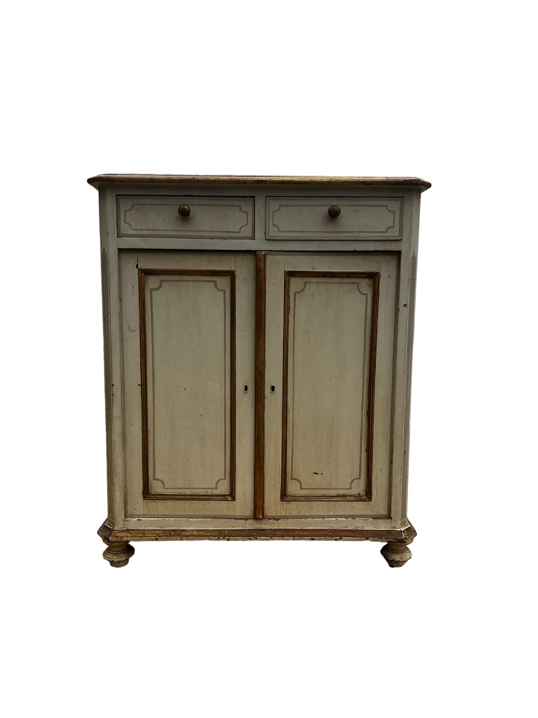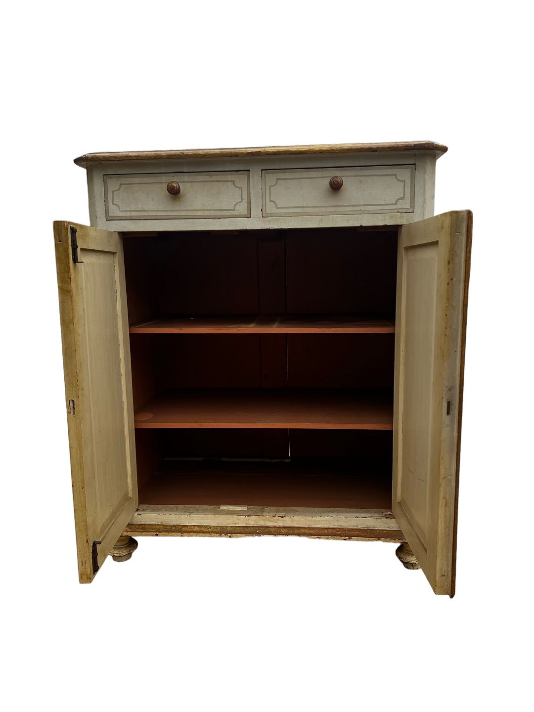 Console cabinet in patinated light shades with small round legs from around the 1860s