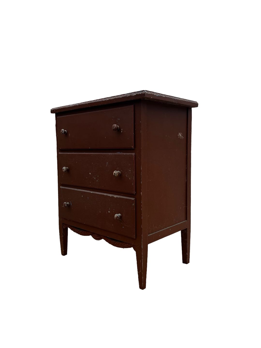 Lille brun malet kommode fra omkring år 1930'erne.