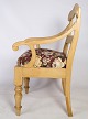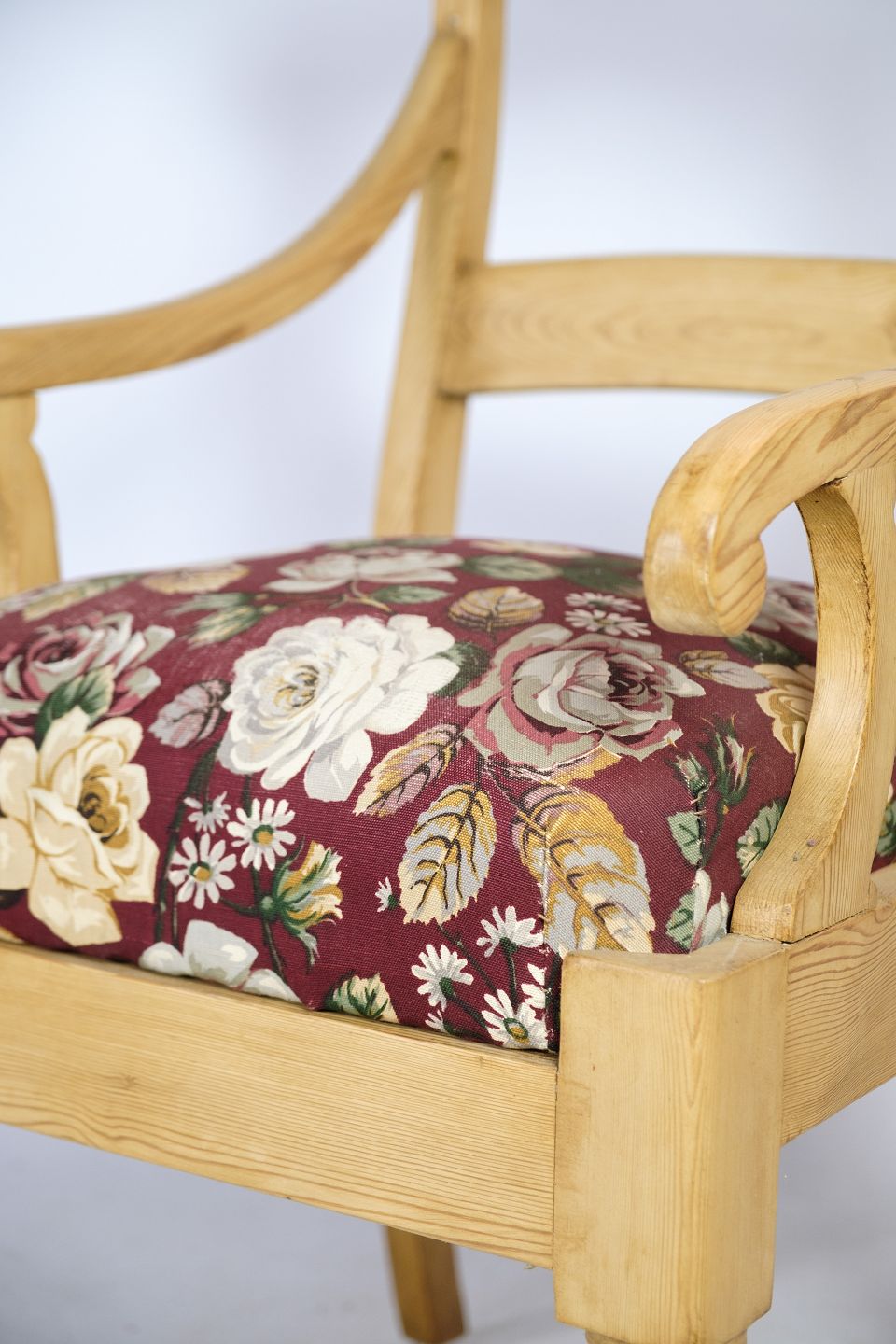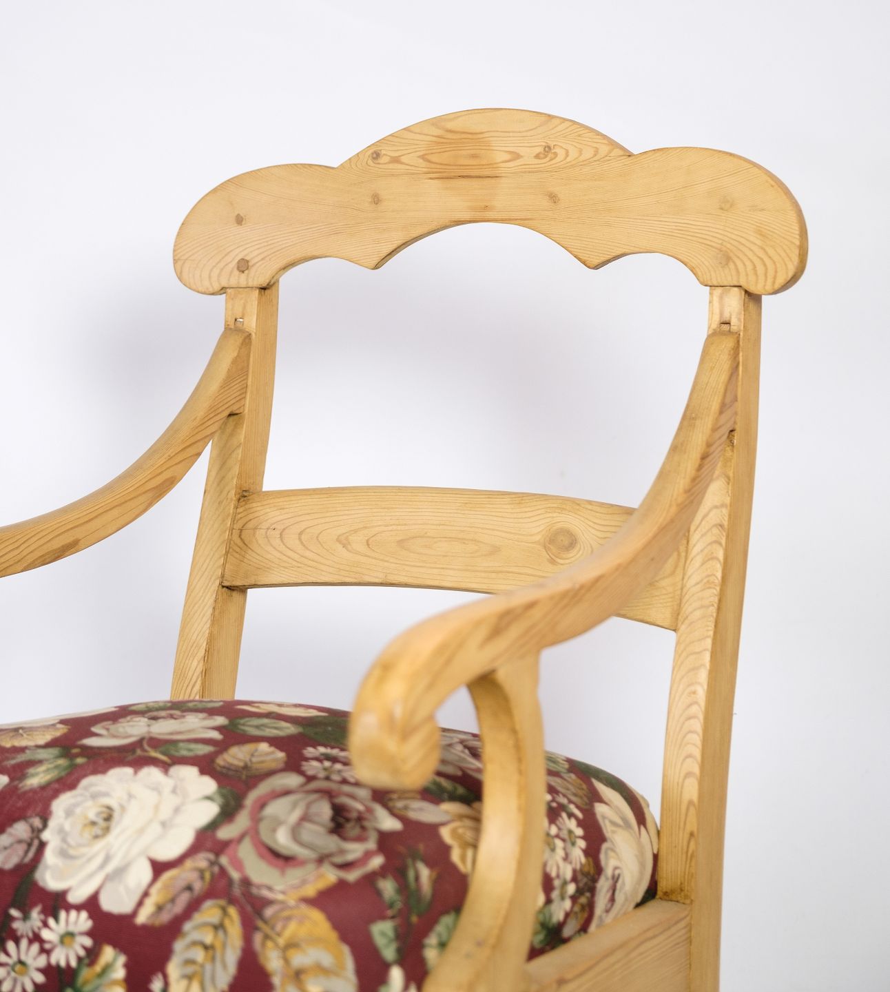 Peasant chair / armchair in pine wood with floral covers from the 1890s. It is in a nicely restored condition.