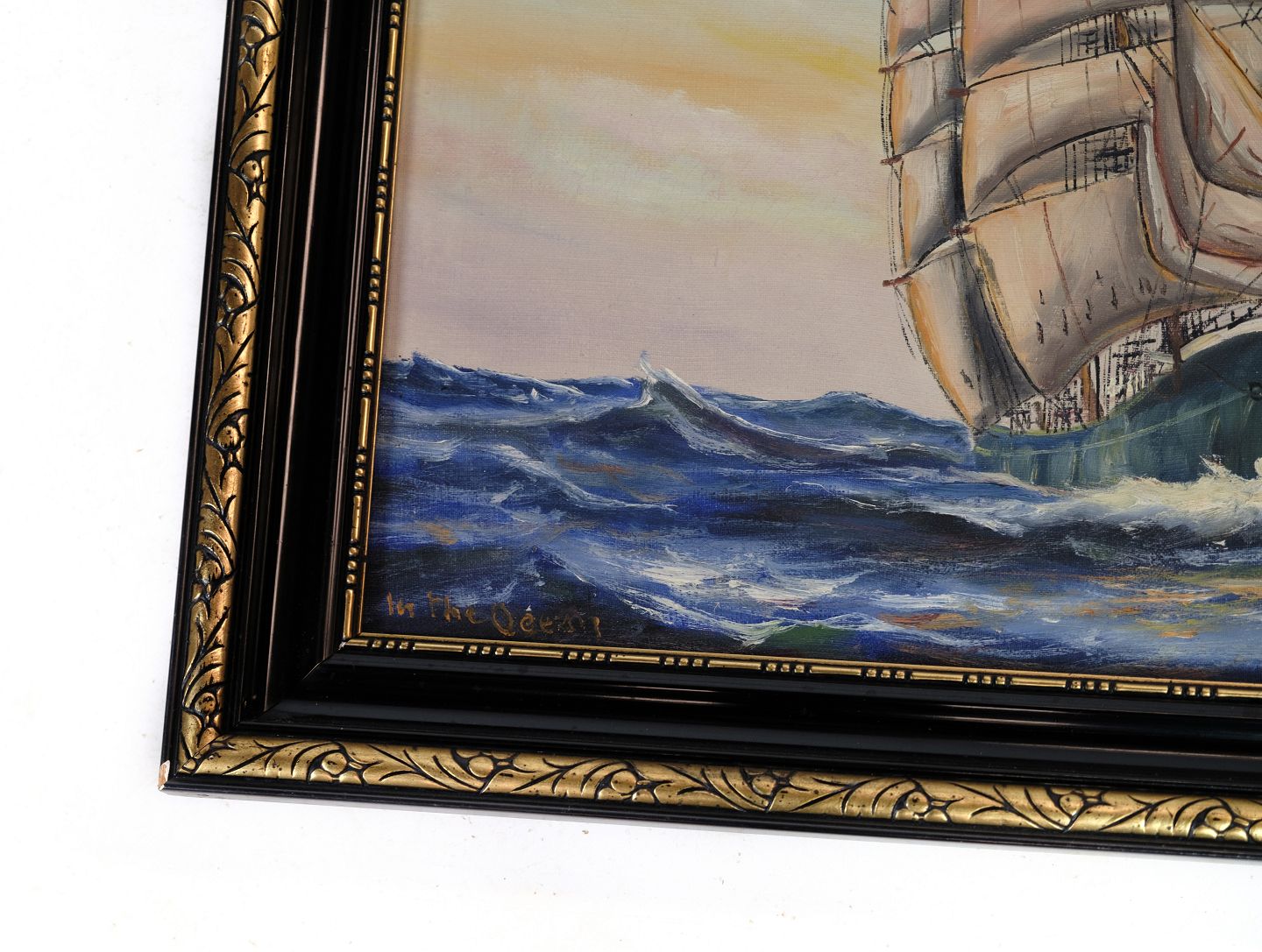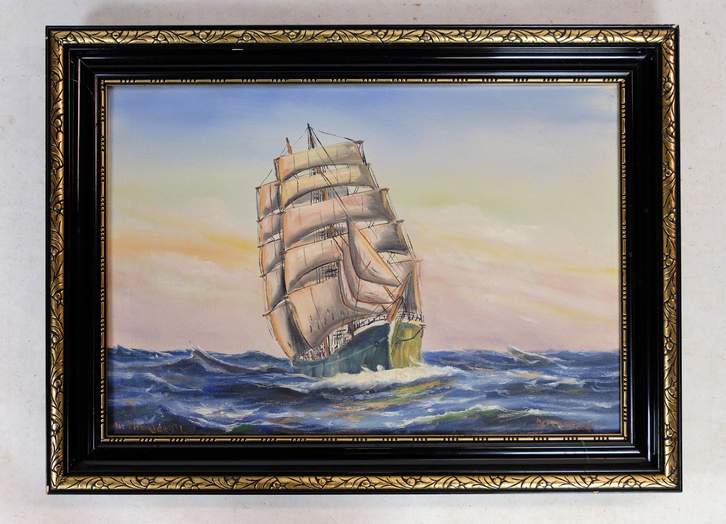 Oil painting with marine motif and with black frame from around 1890. Signed