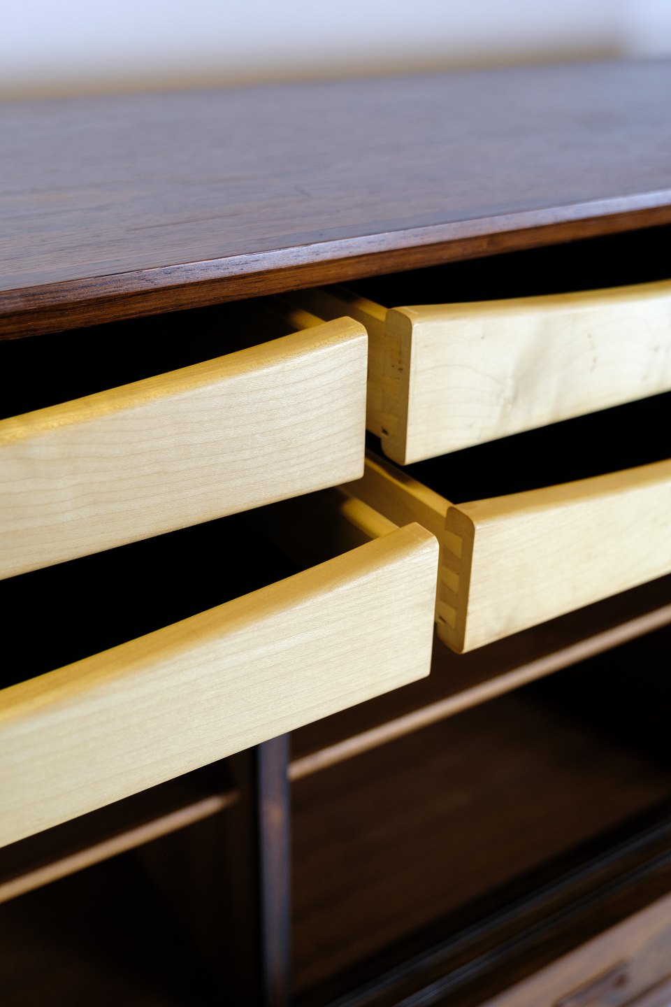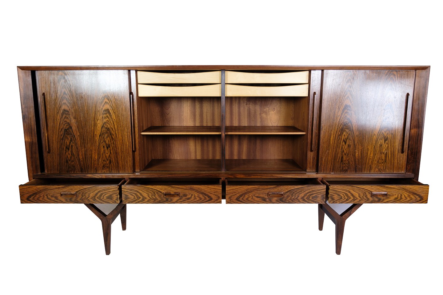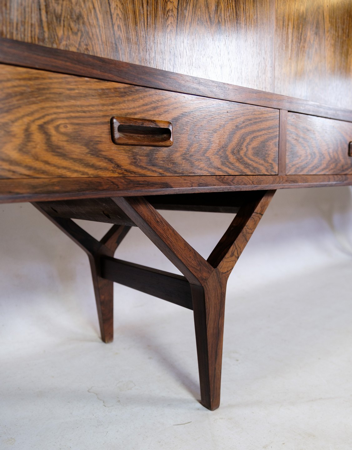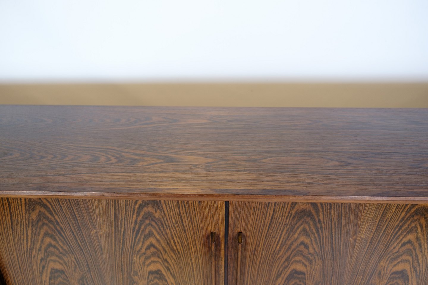 This beautiful rosewood sideboard is a brilliant example of Danish furniture design from the 1960s. The deep, warm color and the characteristic grain patterns in the rosewood add elegance and authenticity to any decor.