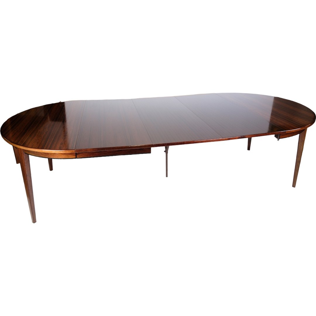 SoldThe dining table in rosewood, designed by Omann Jun. A/S, model no. 55 and from around the 1960s, represents a fine example of mid-20th century Danish furniture design.