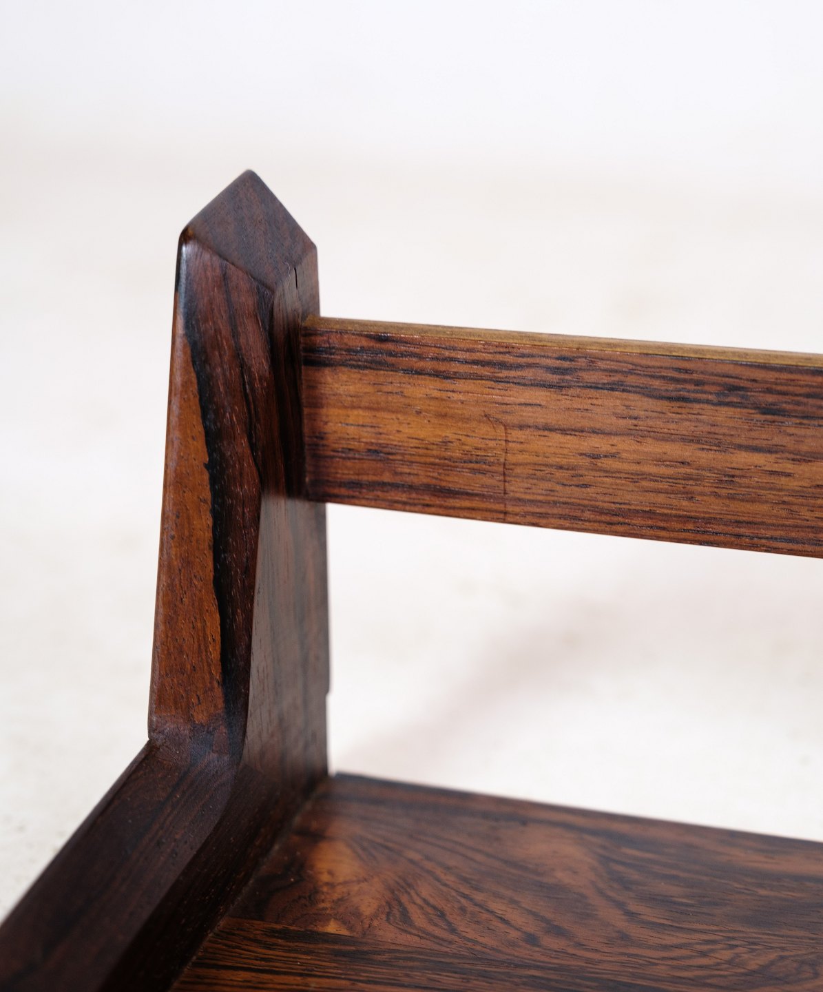 Palisandertræets smukke farver og naturlige mønster giver en luksuriøs følelse til ethvert rum. Med Kai Kristiansens karakteristiske fokus på enkelhed og funktionalitet er disse hylder ikke kun smukke, men også praktiske til opbevaring og udstilling af dine ejendele. Vi har hylder på lager, så du kan tilføje et stykke designhistorie til dit hjem med det samme.