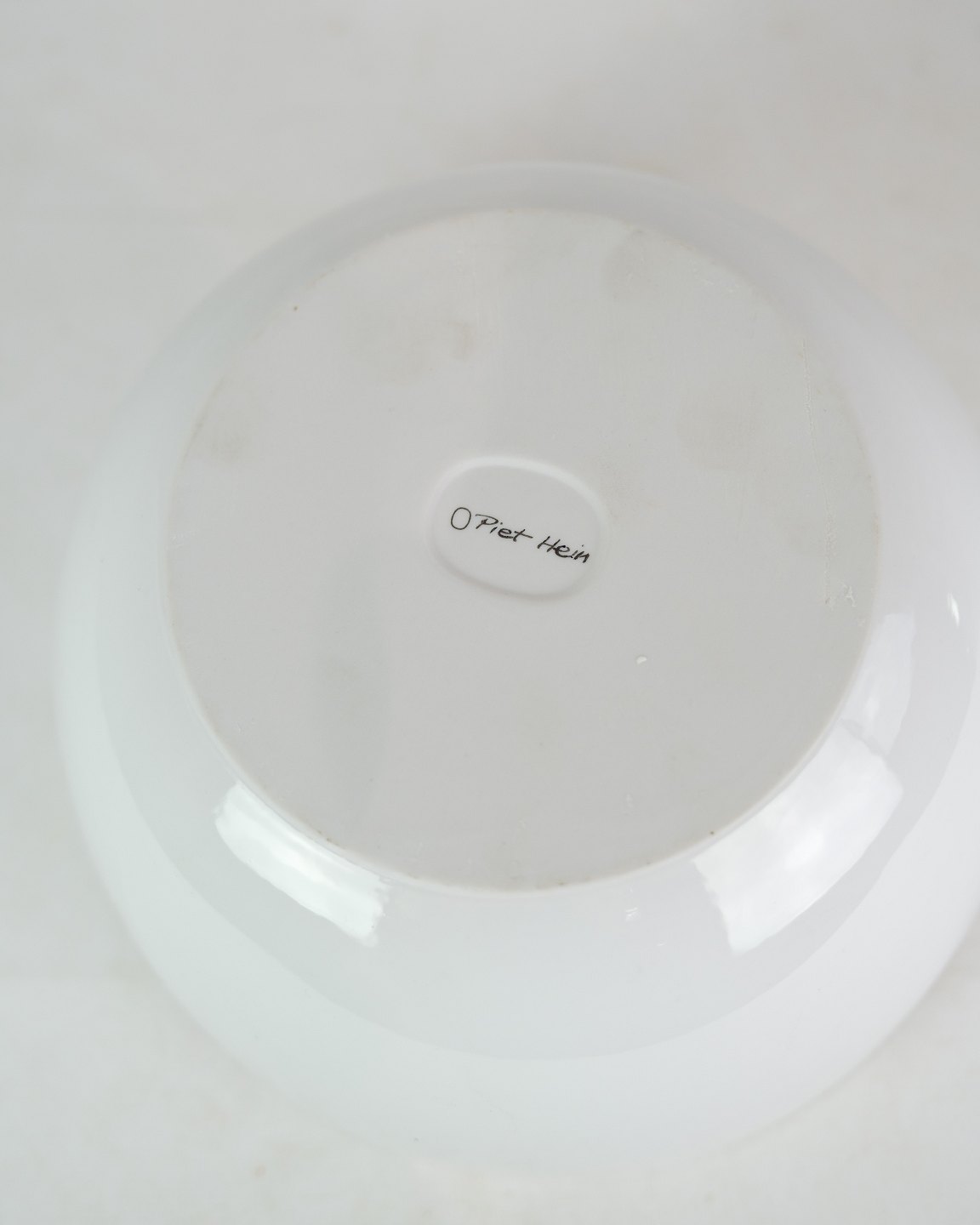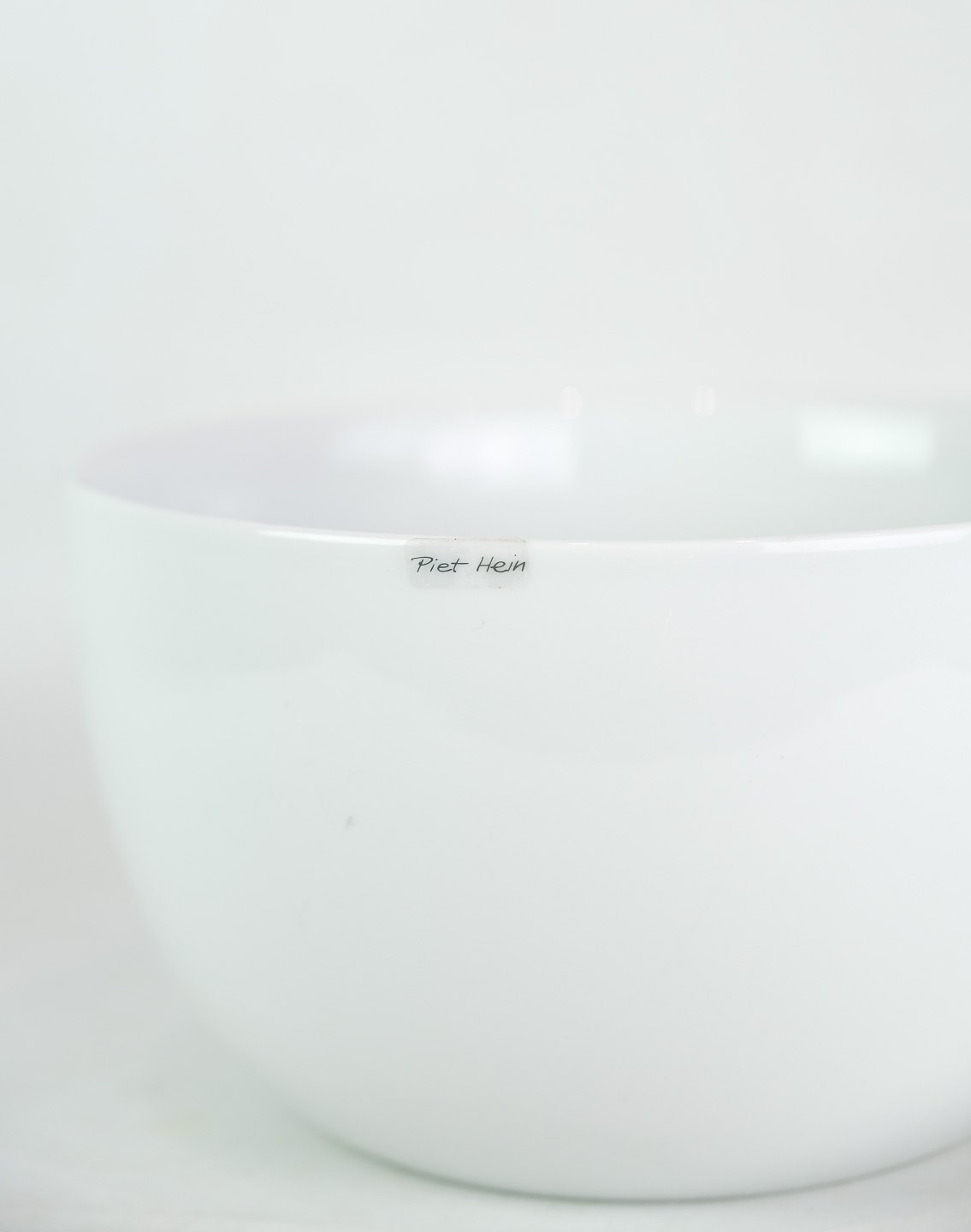 White porcelain bowl designed by Piet Hein. The bowl is oven, microwave, freezer and dishwasher safe as well as quick temperature changes, so you can take the bowl directly from the freezer and put it in a warm oven.