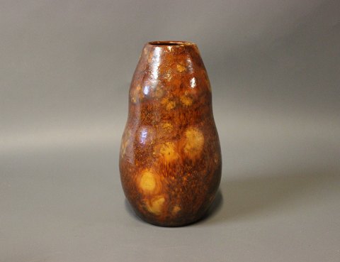 Mørkebrun keramik skål af løvemose keramik fra omkring 1960'erne.