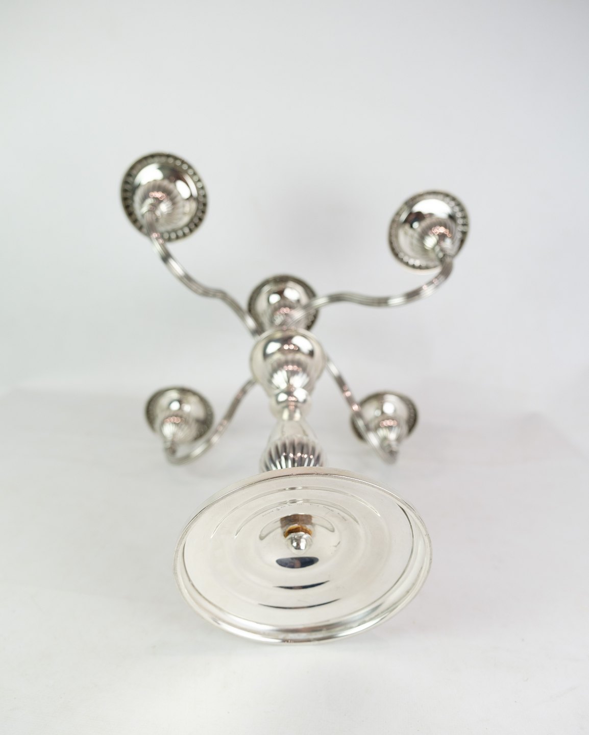 SoldFive-arm candlestick, stamped "industria peruana plata sterling 925 camusso", where the top can be removed and used as a single candlestick. Weight: 845g