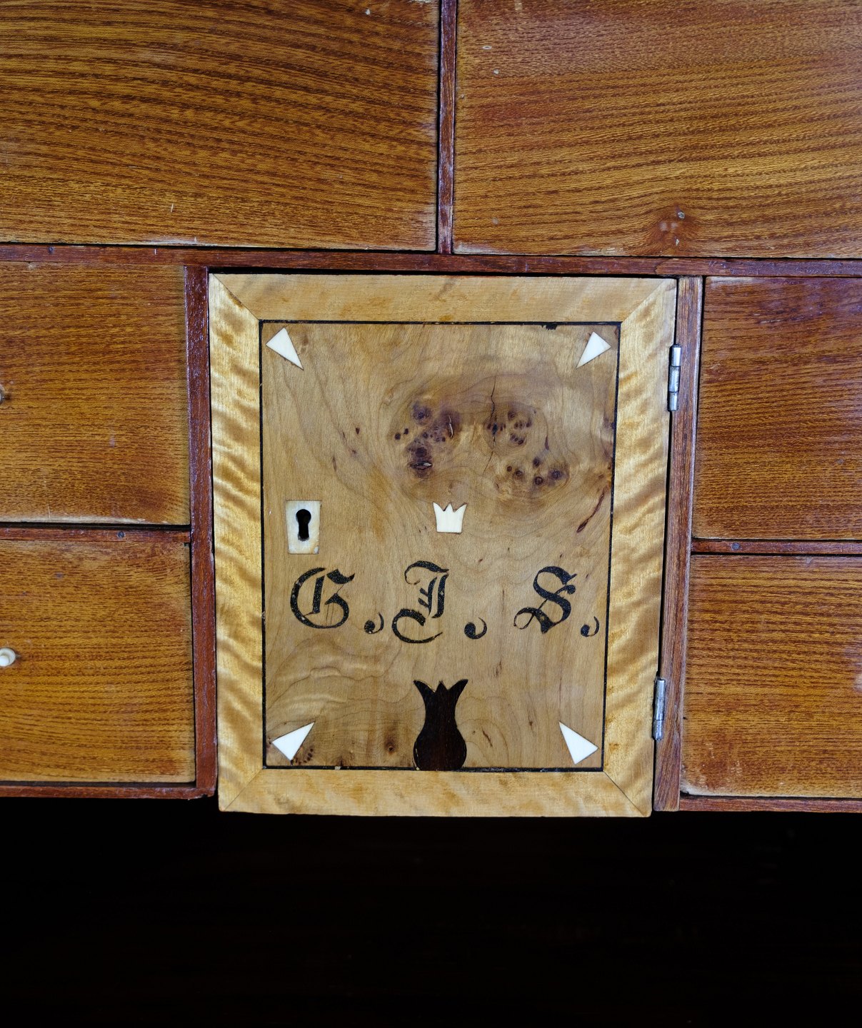 Sekretær - Elmetræ - Intarsia af Frugt træ - Messing Håndtag - 1810