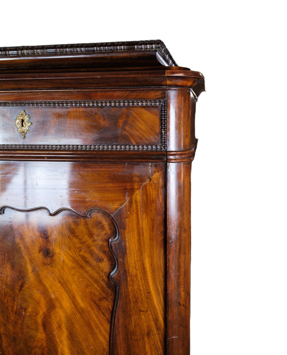 Tall cabinet of polished mahogany in beautiful antique condition with 2 drawers and a door with shelves from the 1850s.