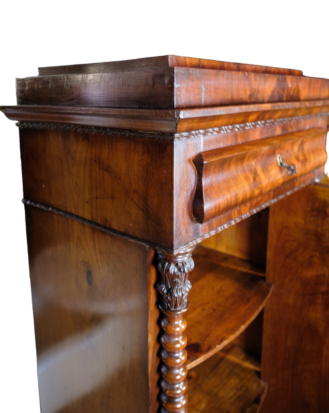 SolgtSen empire piedestalskab af poleret mahogni med skuffe i toppen og bunden fra omkring 1840