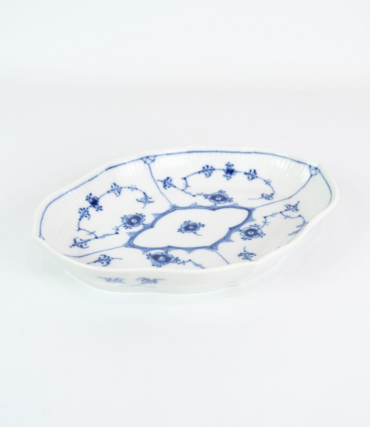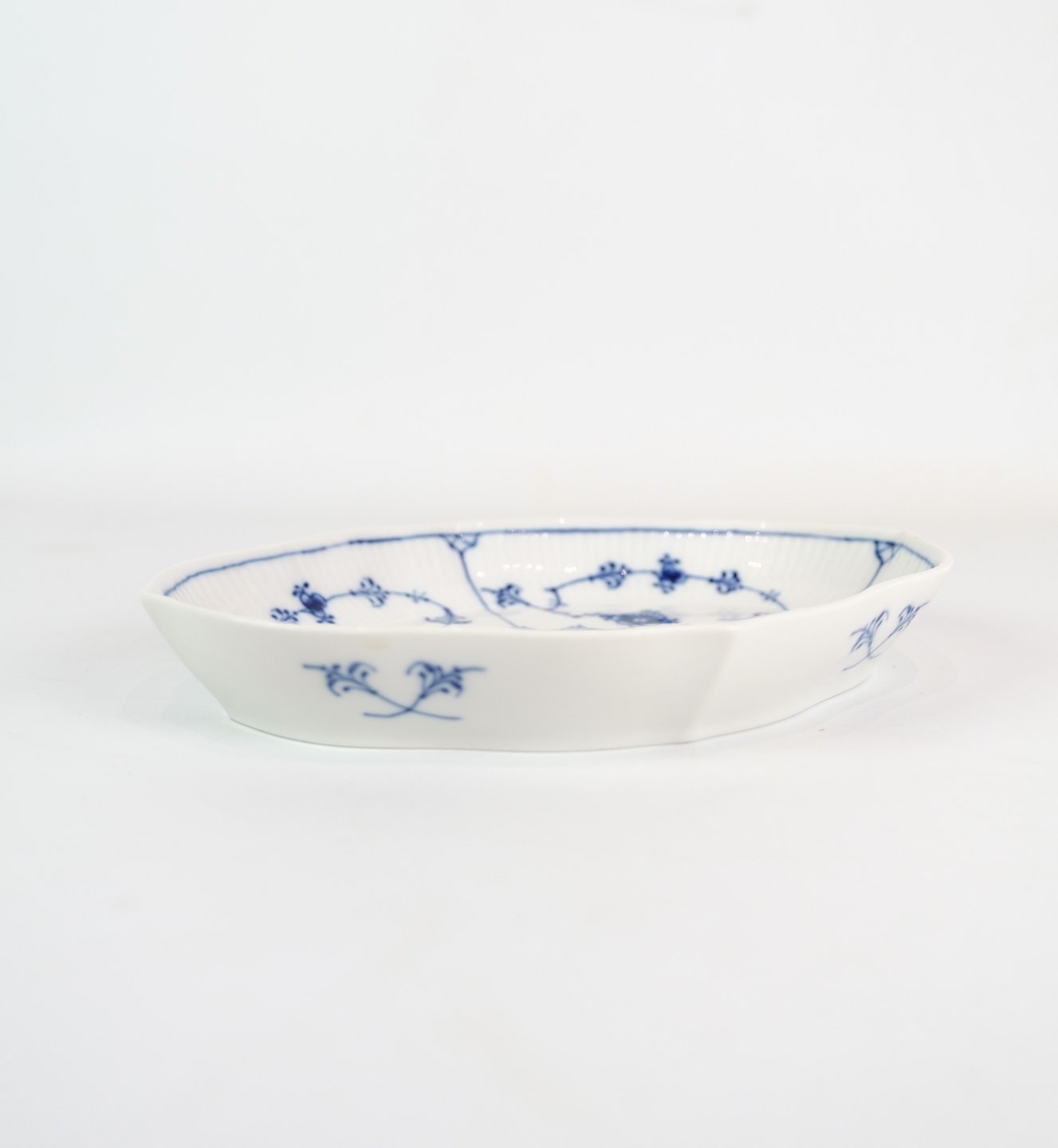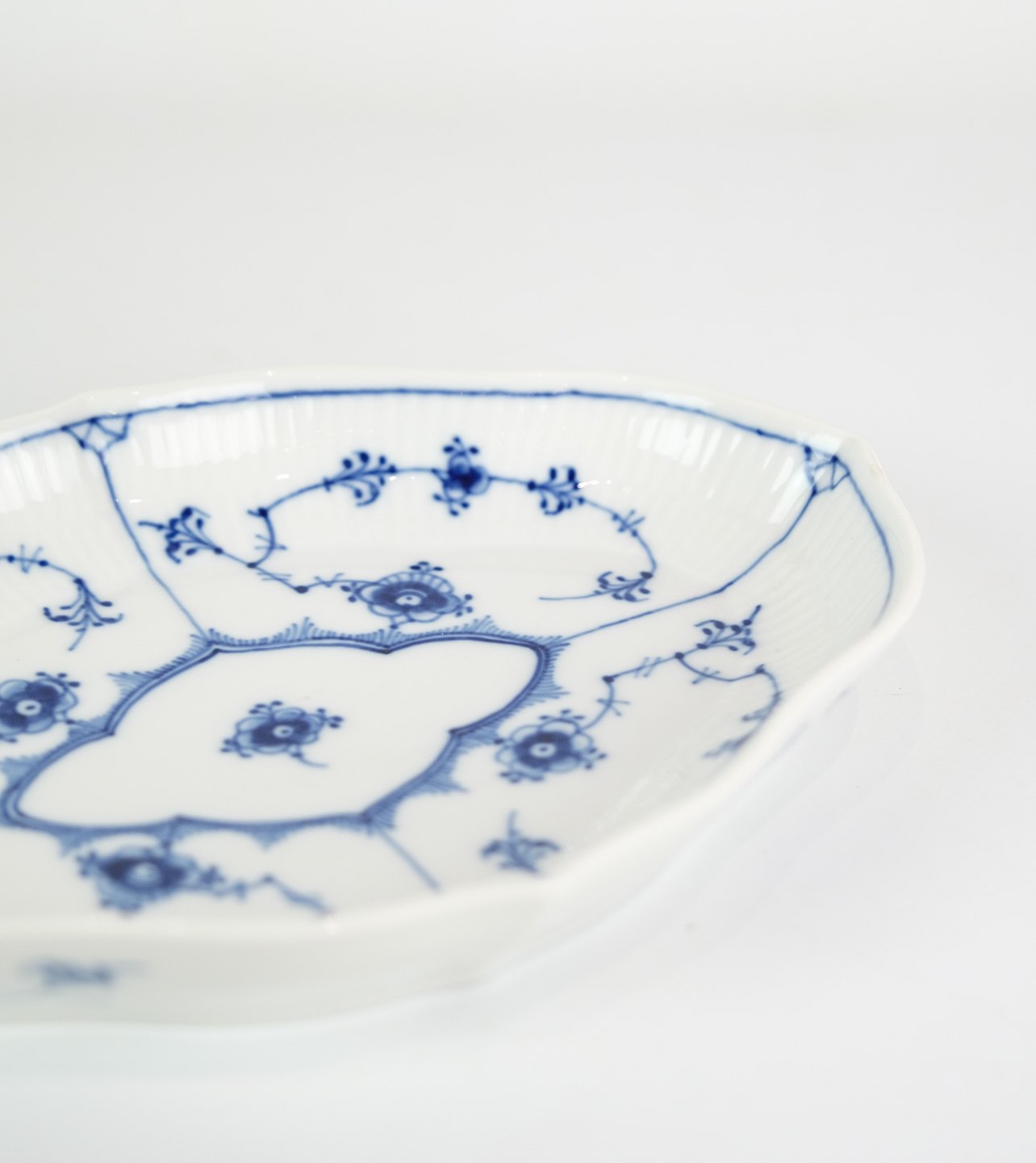 This elongated asie is part of the iconic Musselmalet Riflet series, characterized by the characteristic Riflet grooves and delicate blue patterns that adorn the surface. The decoration number 1/147 is a reference to the unique pattern and design that has been carefully selected for this asiet.