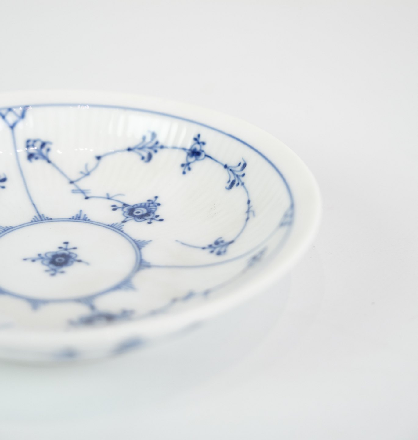 Royal Copenhagen Musselmalet Fluted asiet with number 153-1 is a beautiful and timeless piece of porcelain that adds a subtle elegance to your table settings.