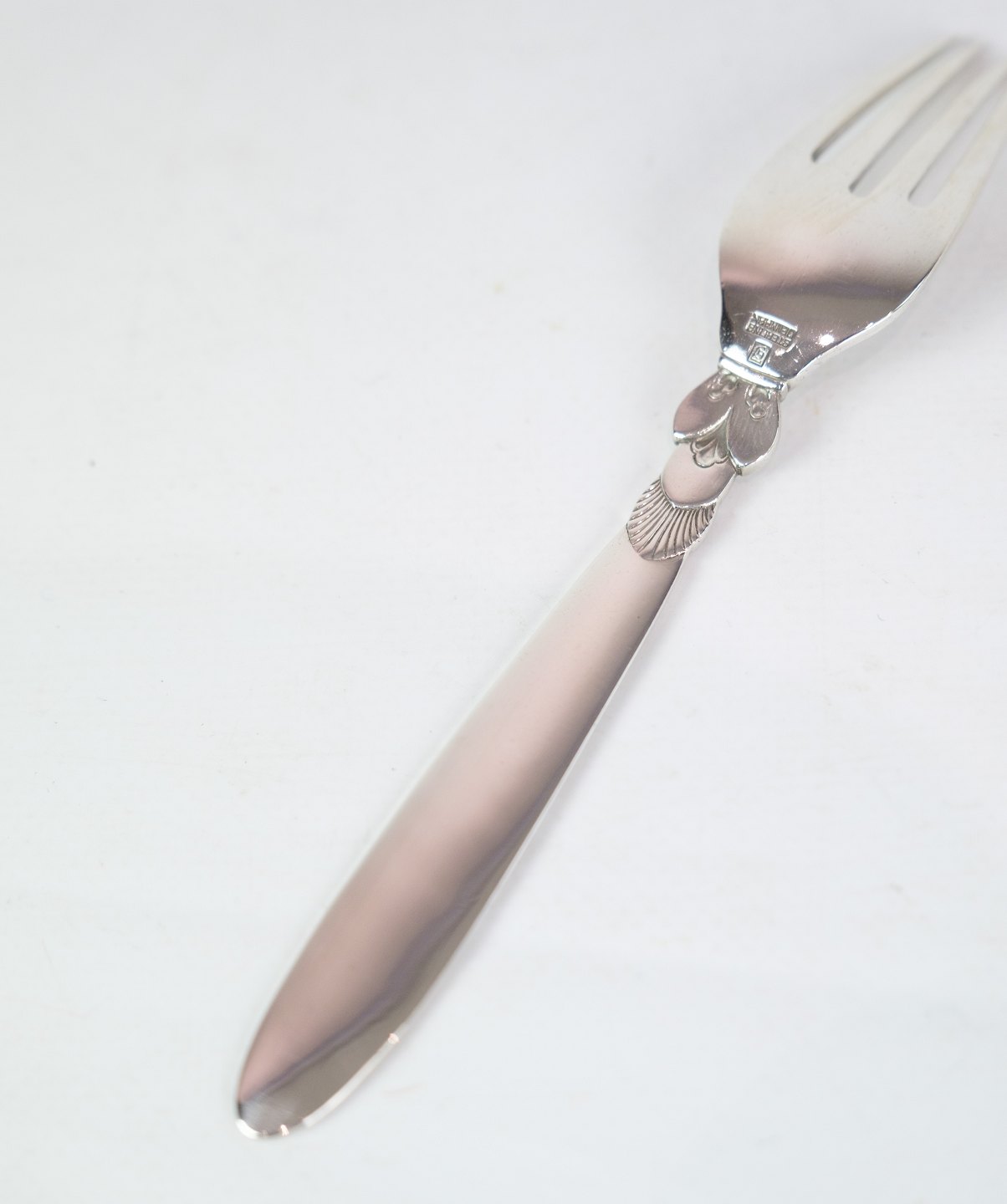 Frokostgaffel i mønstret kaktus, designet af Georg Jensen. Stemplet Sterling Danmark