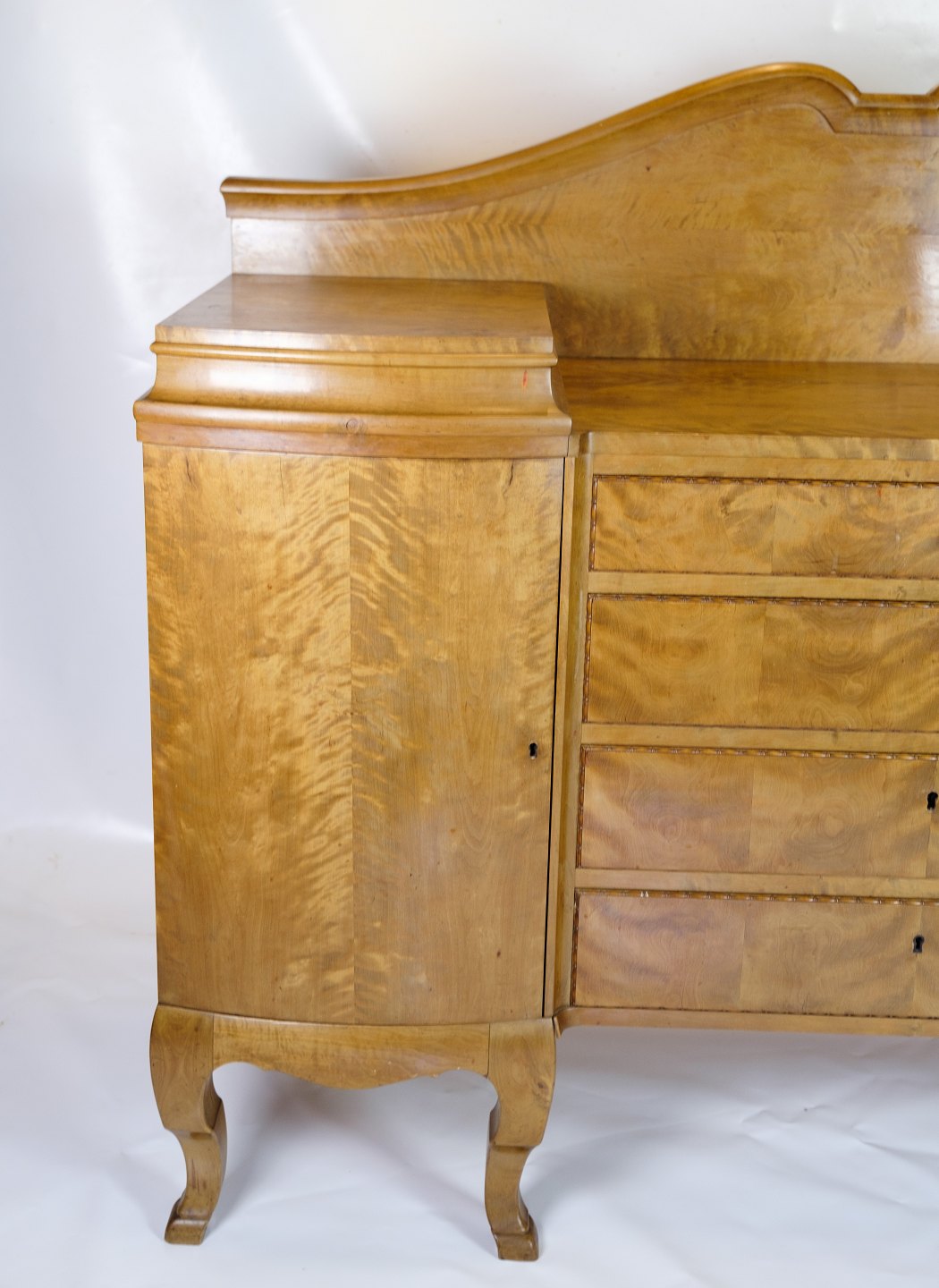 Antique birch sideboard with 4 drawers in the middle and doors on each side from around the 1920s. Original key included