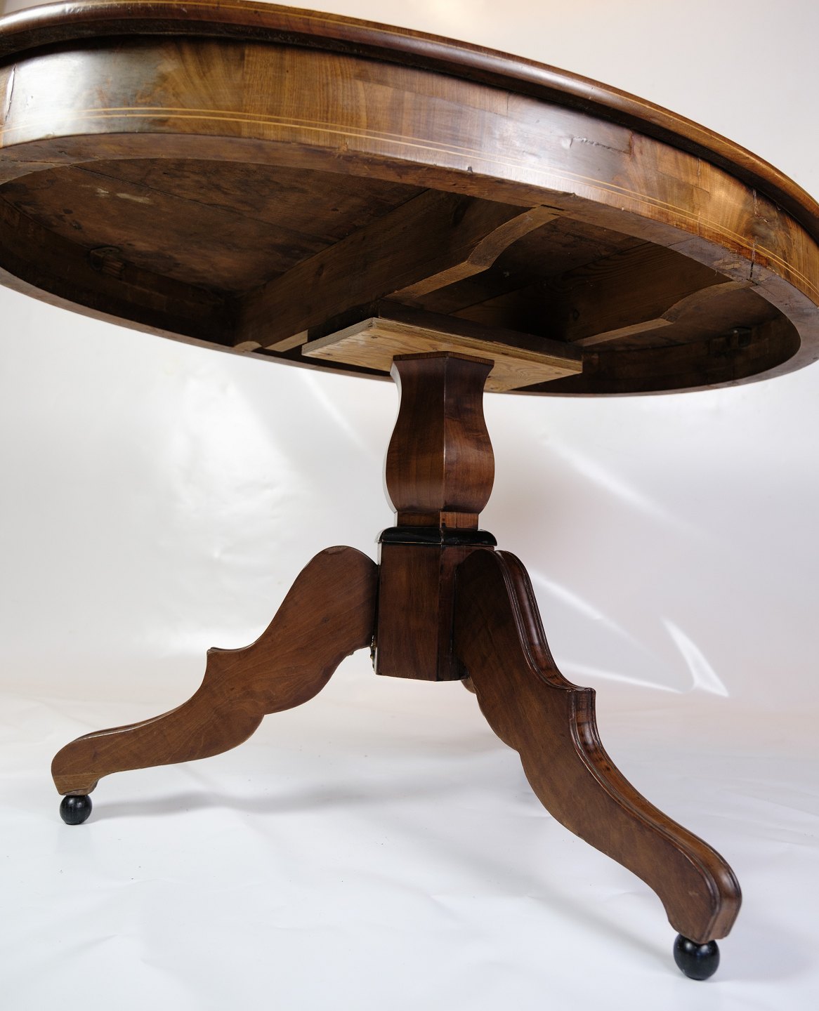 Round Late Empire mahogany dining table with 3 legs from around the 1840s.