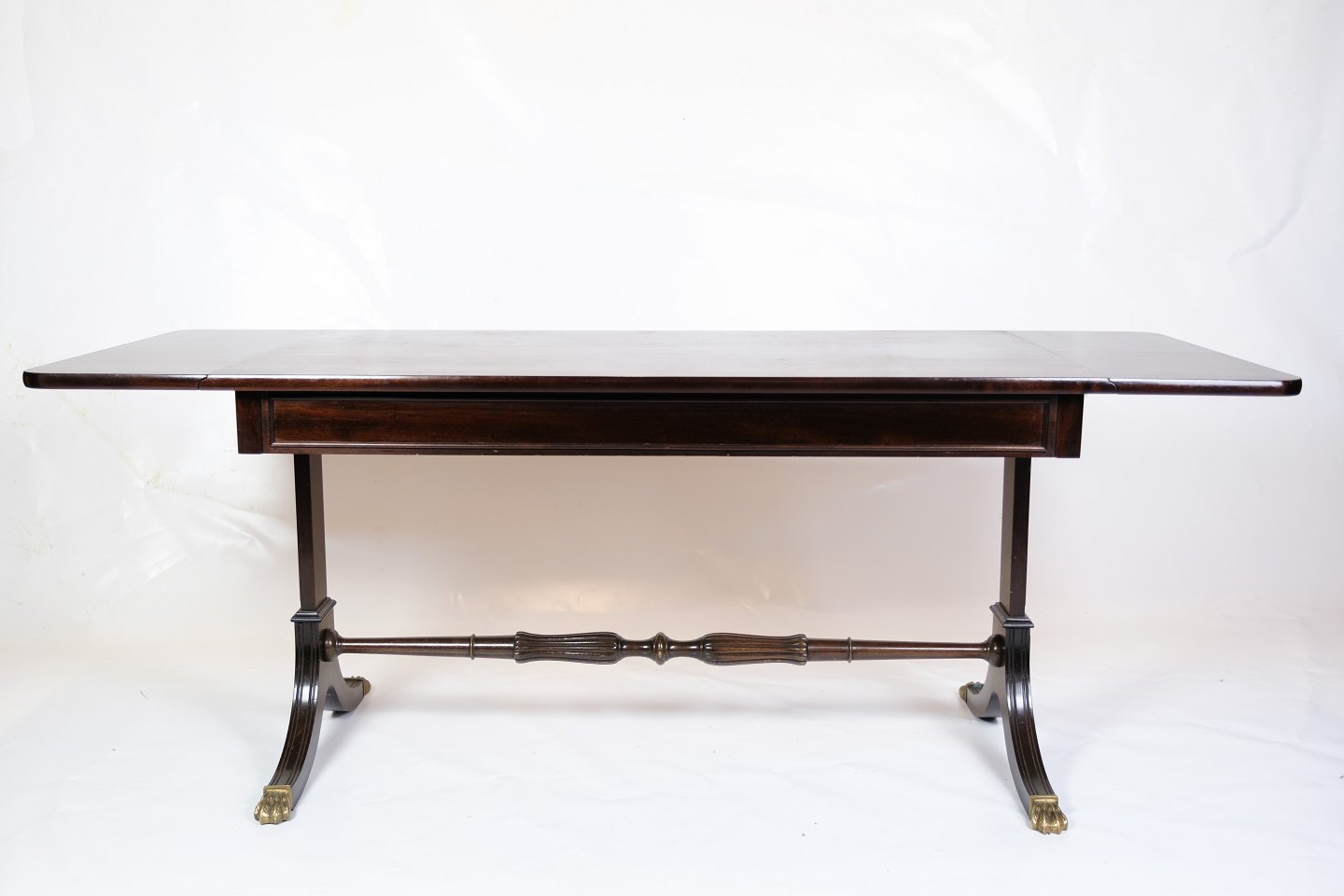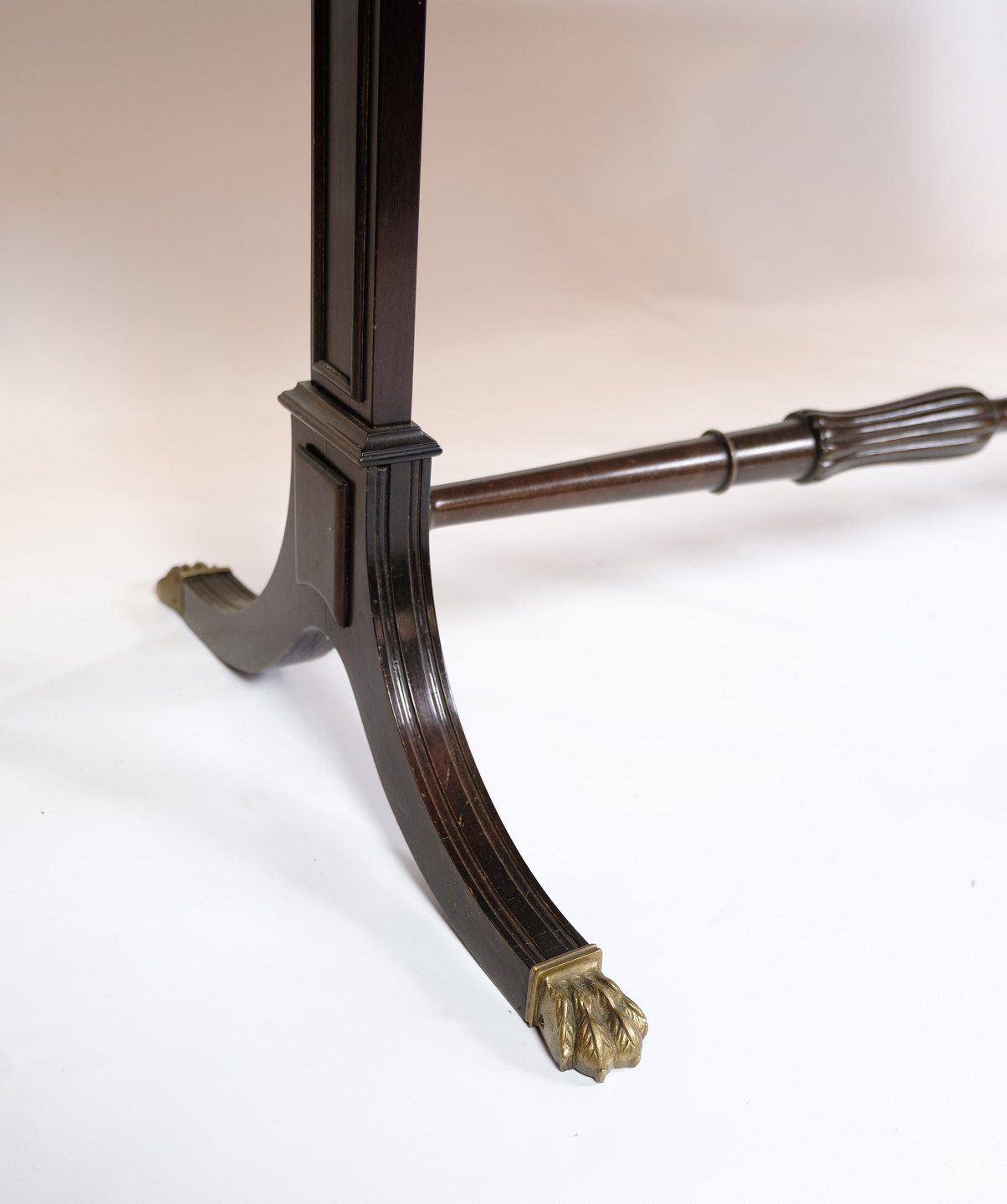 Mahogany coffee table by a Danish master carpenter decorated with lion feet of brass and wood carvings from around the 1920s.