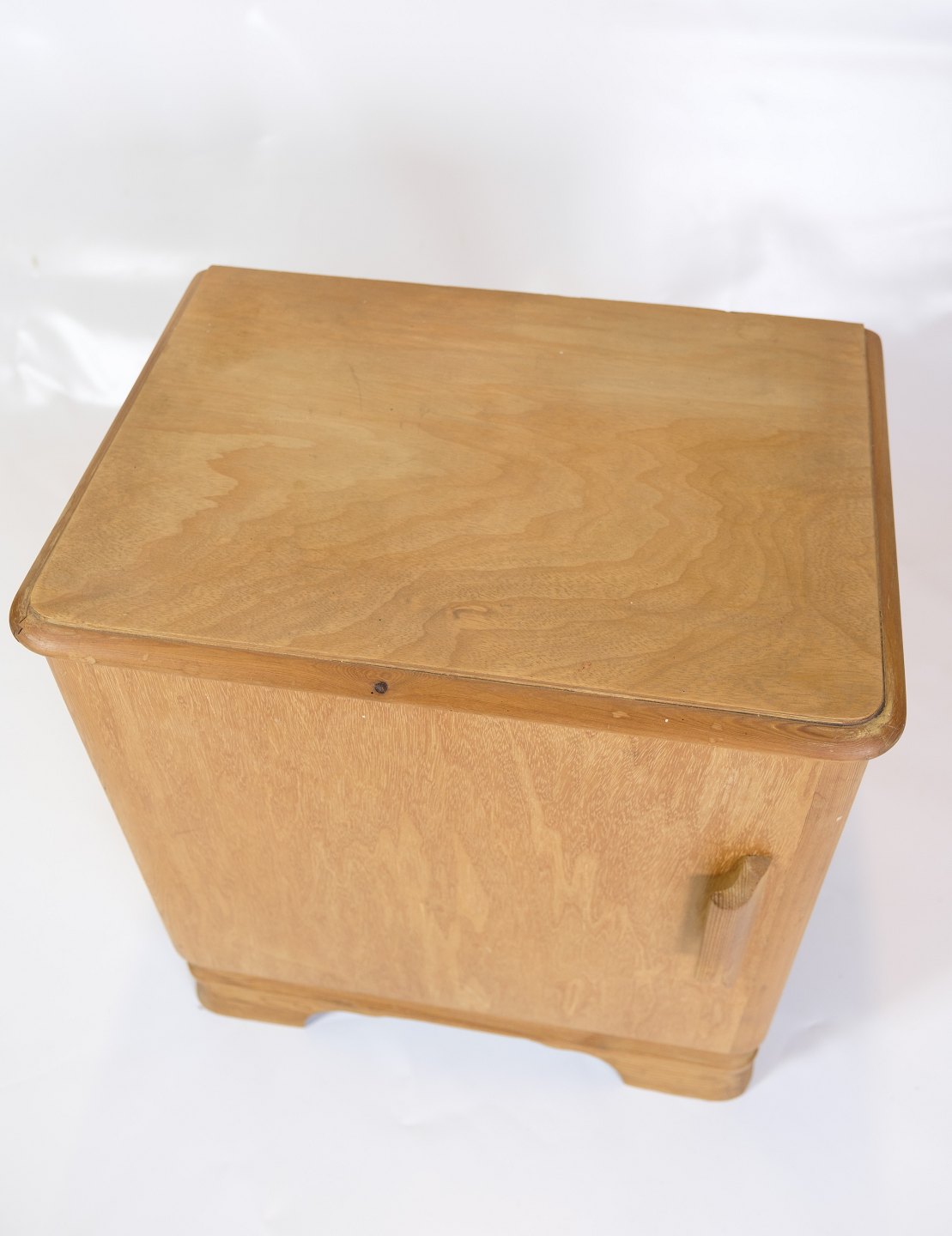 Antique pine nightstand with door and brass hinges from around the 1930s.