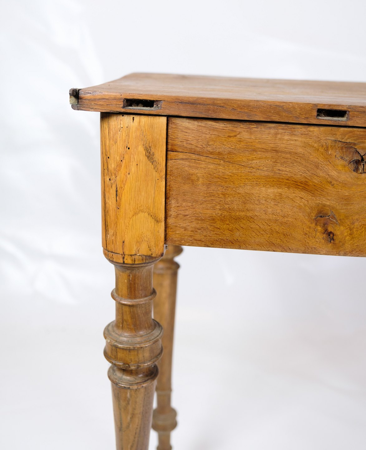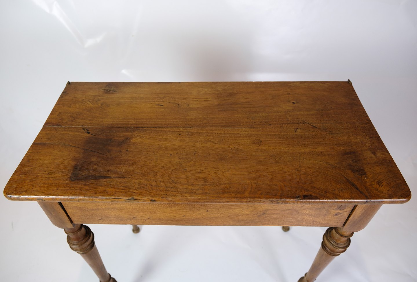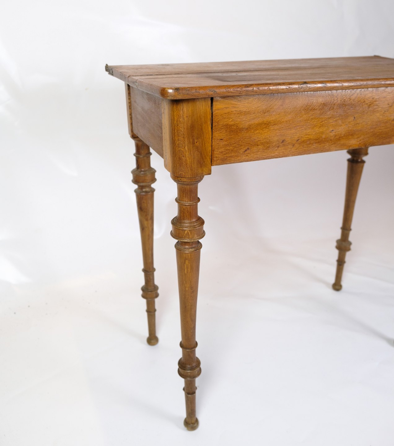 Sidebord af egetræ oplagt, som entre møbel med runde ben fra omkring 1890'erne.