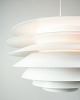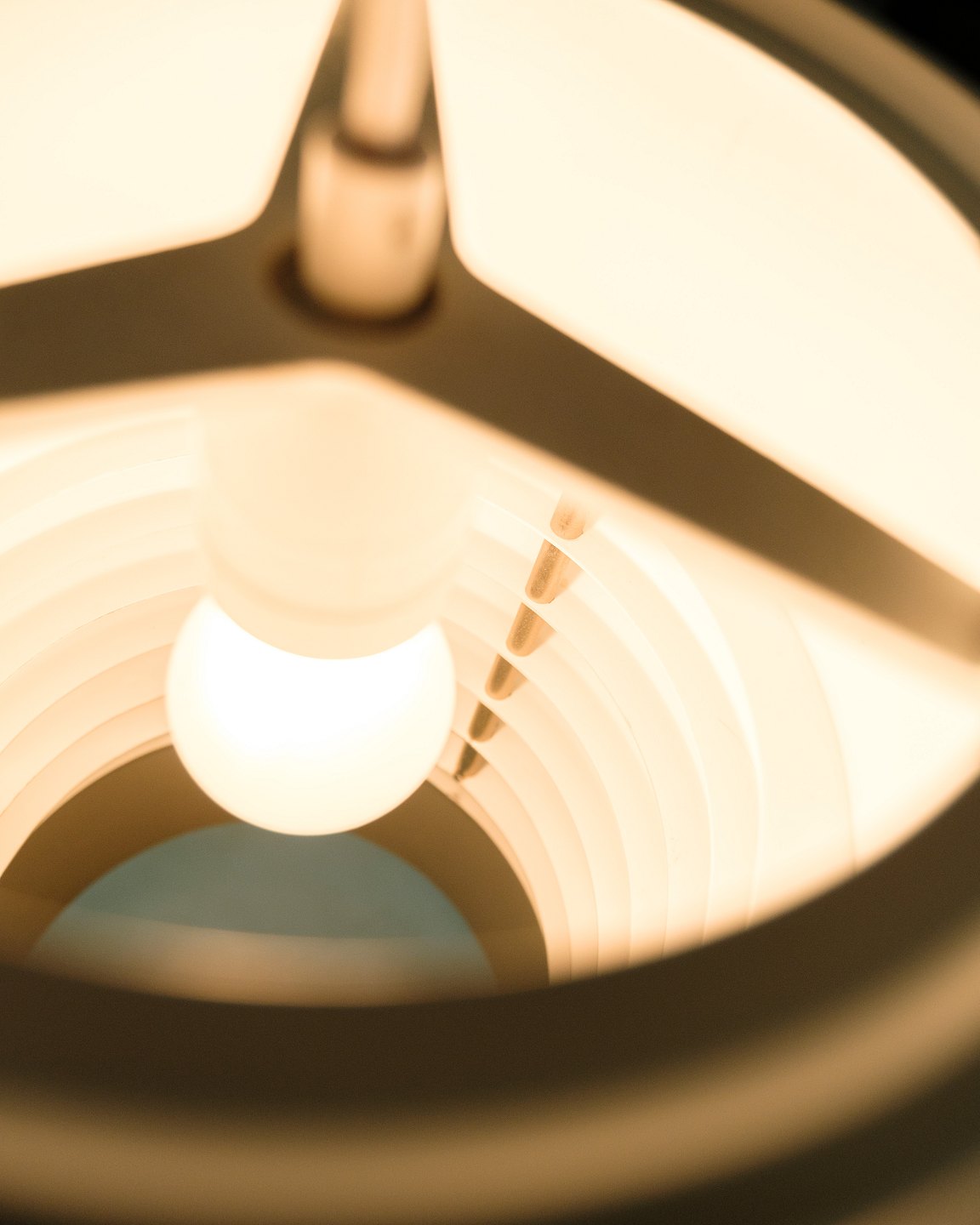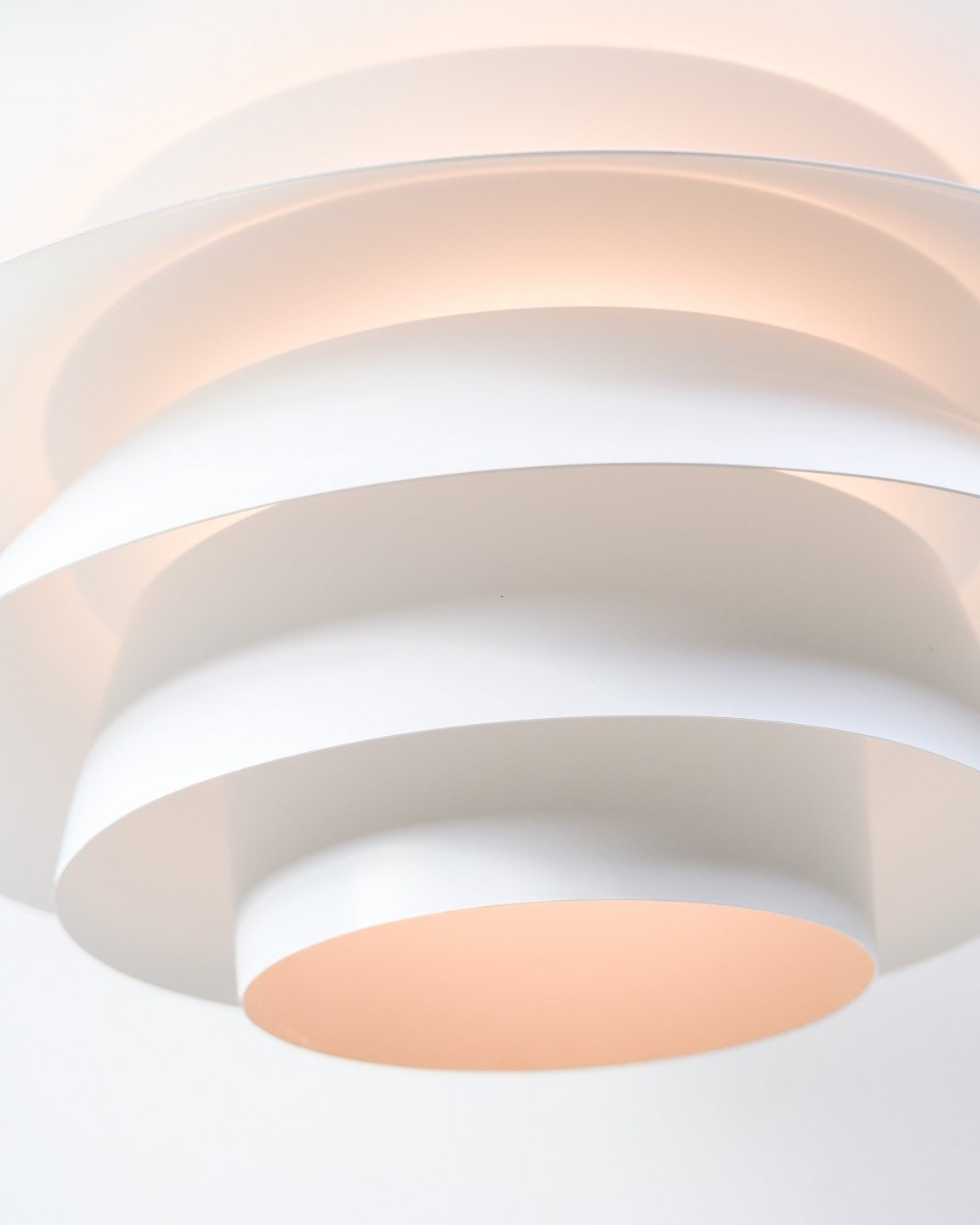 The body of the lamp, made of white lacquered metal, radiates a subtle shine and creates a visual lightness. The oval shape adds a modern touch while maintaining a classic yet sophisticated aesthetic. The soft arc and symmetry of the design make this ceiling lamp more than just a light source; it becomes an artistic statement that transforms any space.