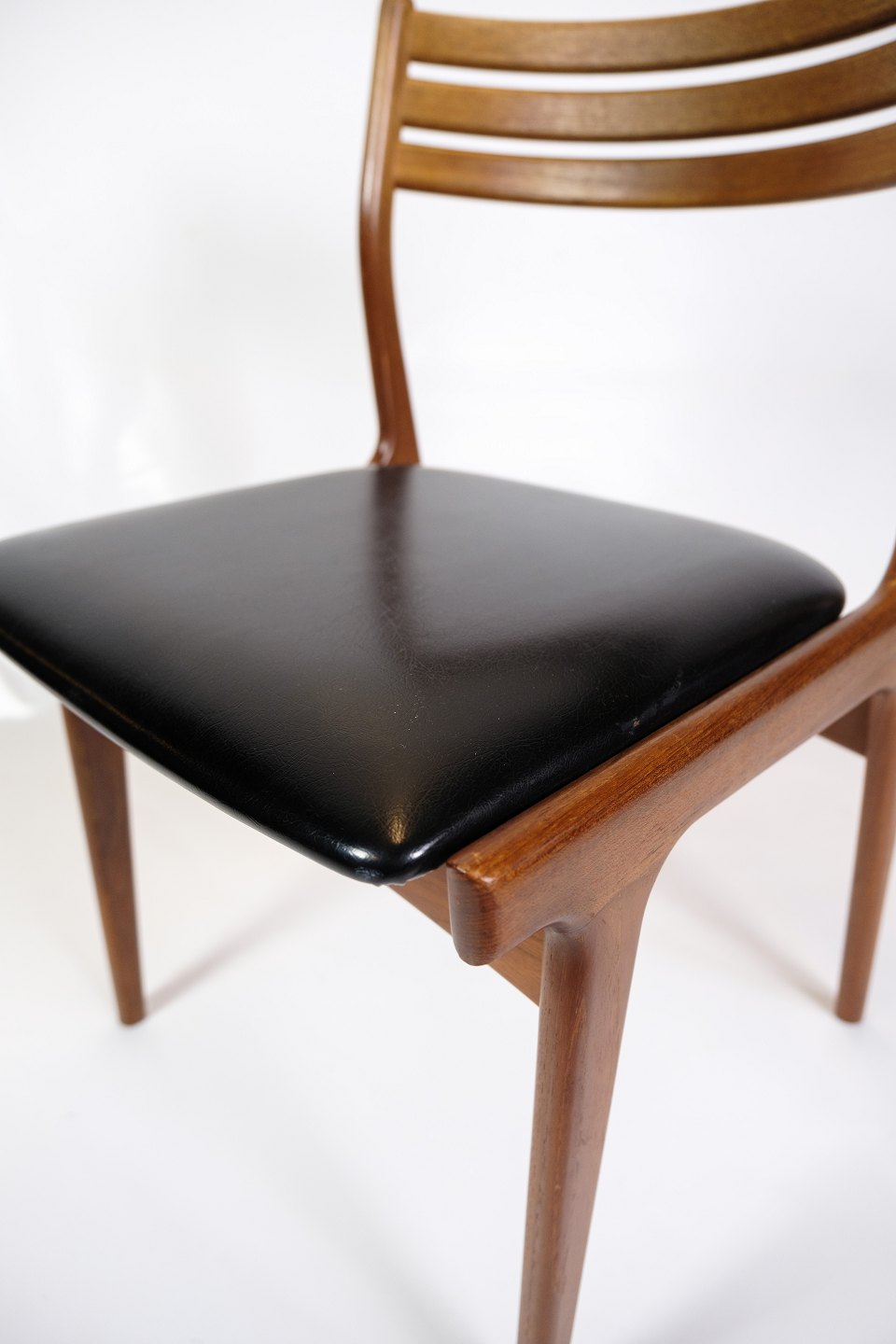 Set of 6 Dining Room Chairs - Model U20 - Teak - Black leather - Johannes Andersen - Uldum Møbelfabrik - 1960