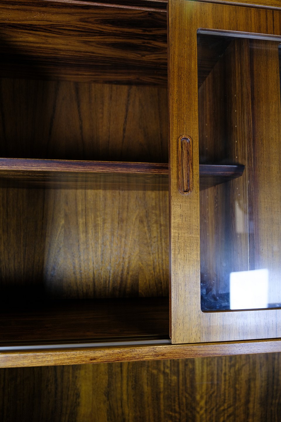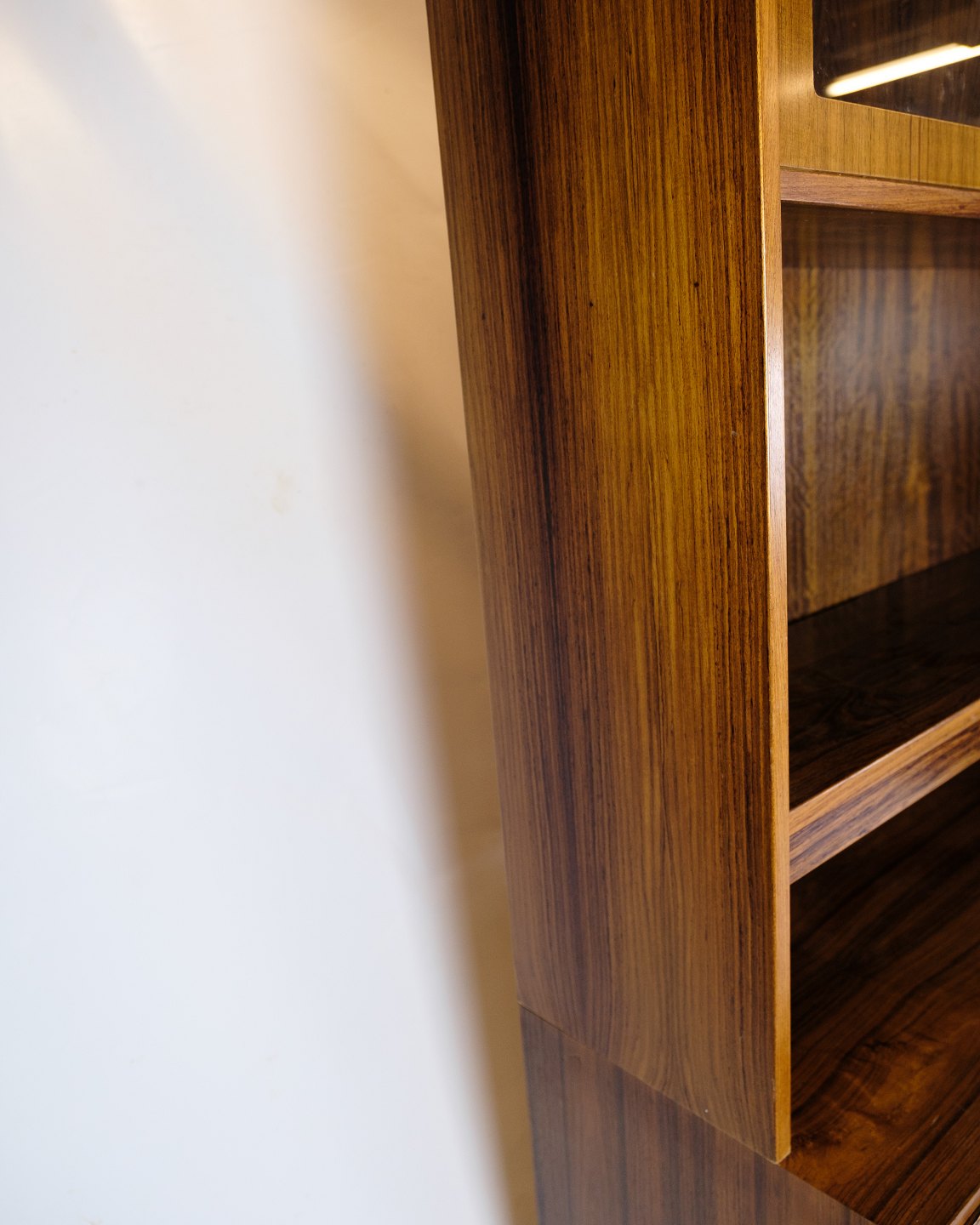 This bookcase in rosewood from Hundevad is an impressive example of Danish furniture design from the 1960s. Hundevad, a renowned furniture manufacturer known for their high quality and timeless design, is behind this piece of furniture.