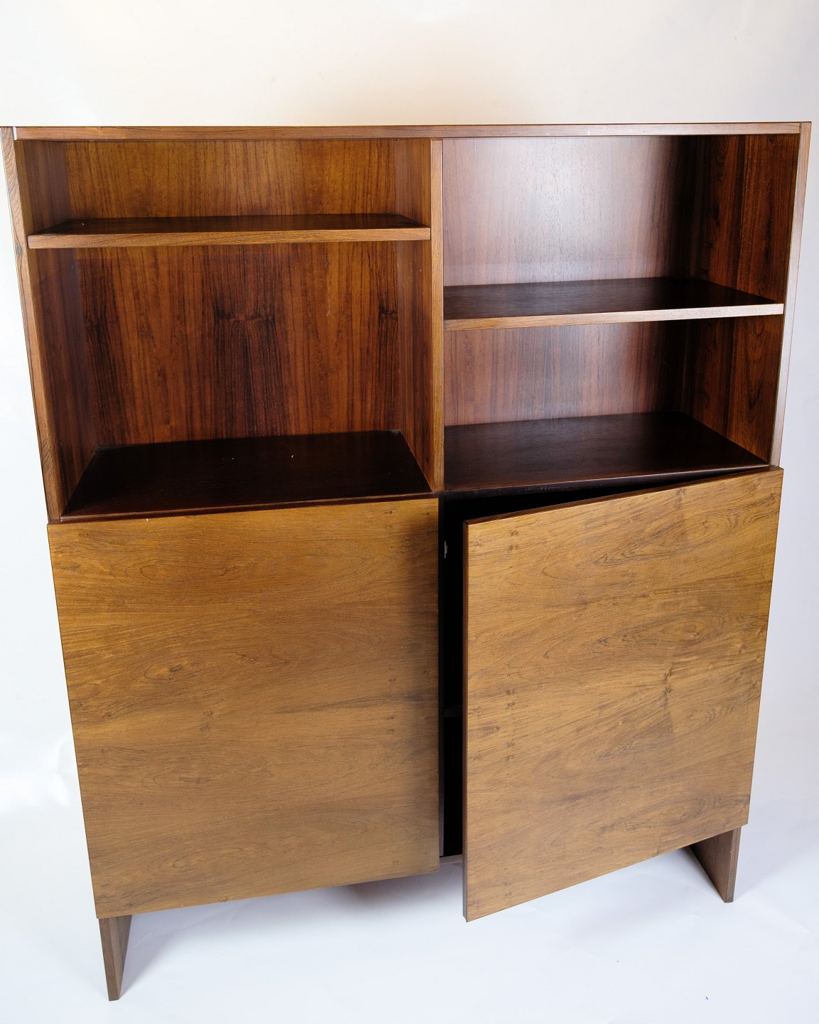 Denne reol er et fantastisk eksempel på dansk design fra 1960'erne. Fremstillet af palisandertræ, udstråler den en tidløs elegance og enkelhed, der kendetegner den skandinaviske designtradition.