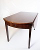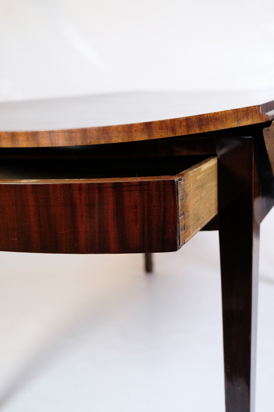 SoldThis antique folding table/dining table from around 1840 is a wonderful example of classic craftsmanship and timeless elegance. Made of polished mahogany wood, the table radiates warmth and beauty with its beautiful wood pattern. The unique design includes a practical drawer that adds functionality to the table. With its older age, the table wears an authentic patina that only adds to its historic appeal.