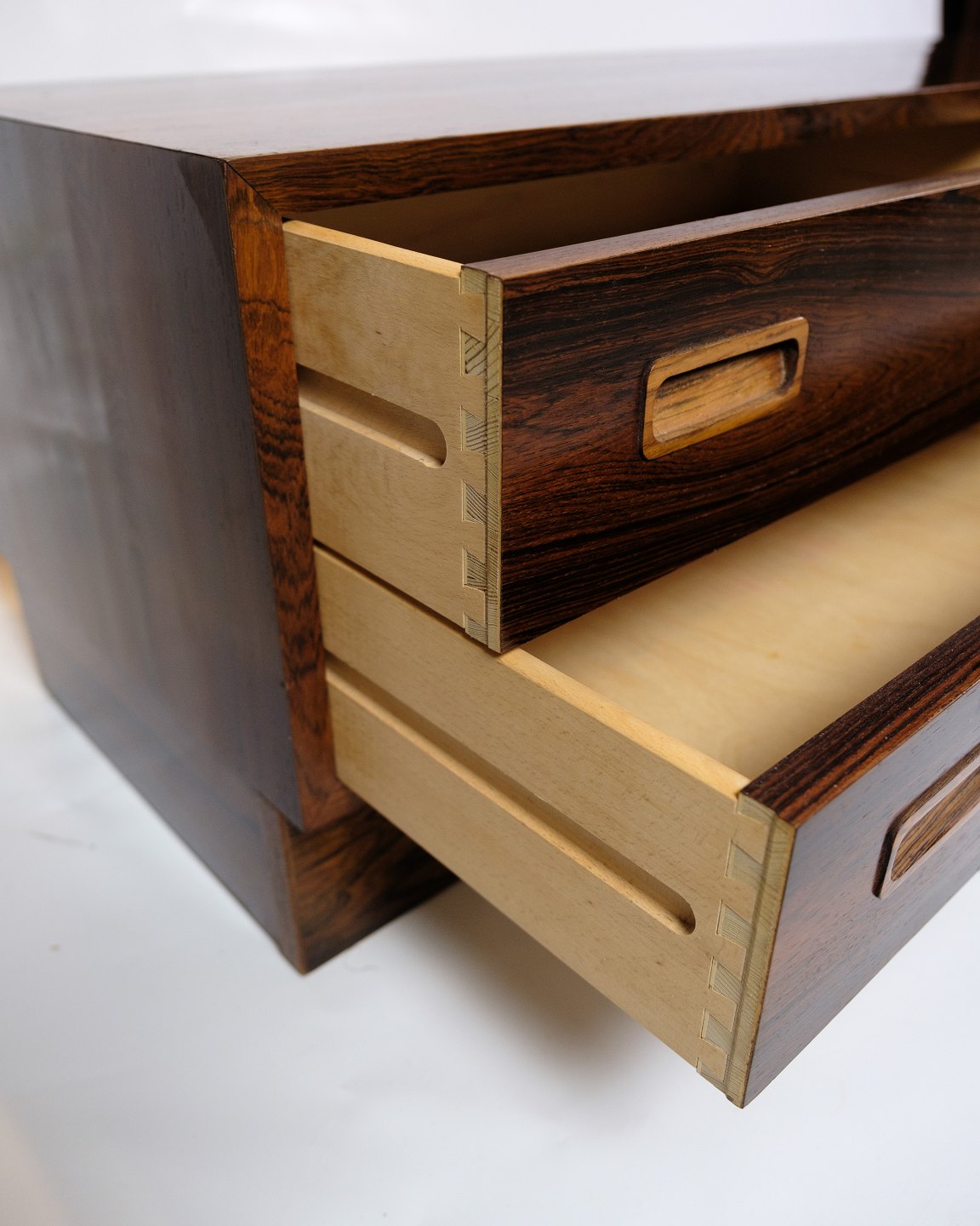 This chest of drawers is a brilliant example of Danish design from the 1960s, created by Hundevad Møbelfabrik. Crafted from rosewood, this chest of drawers exudes a timeless elegance and simplicity that fits perfectly with any decor.