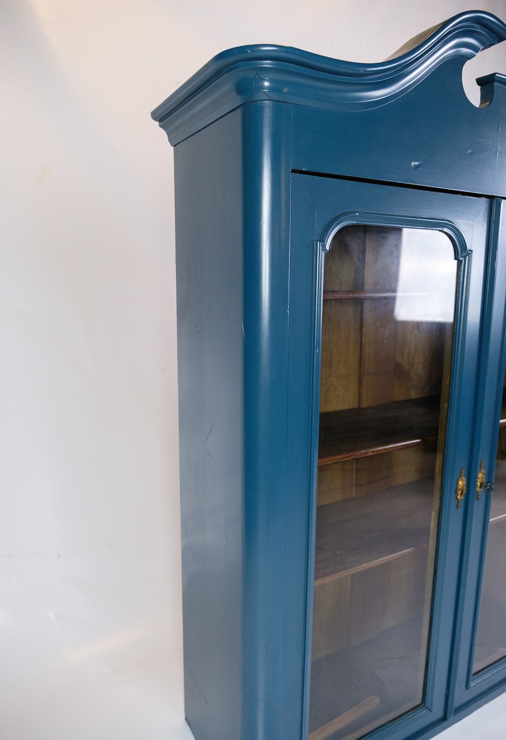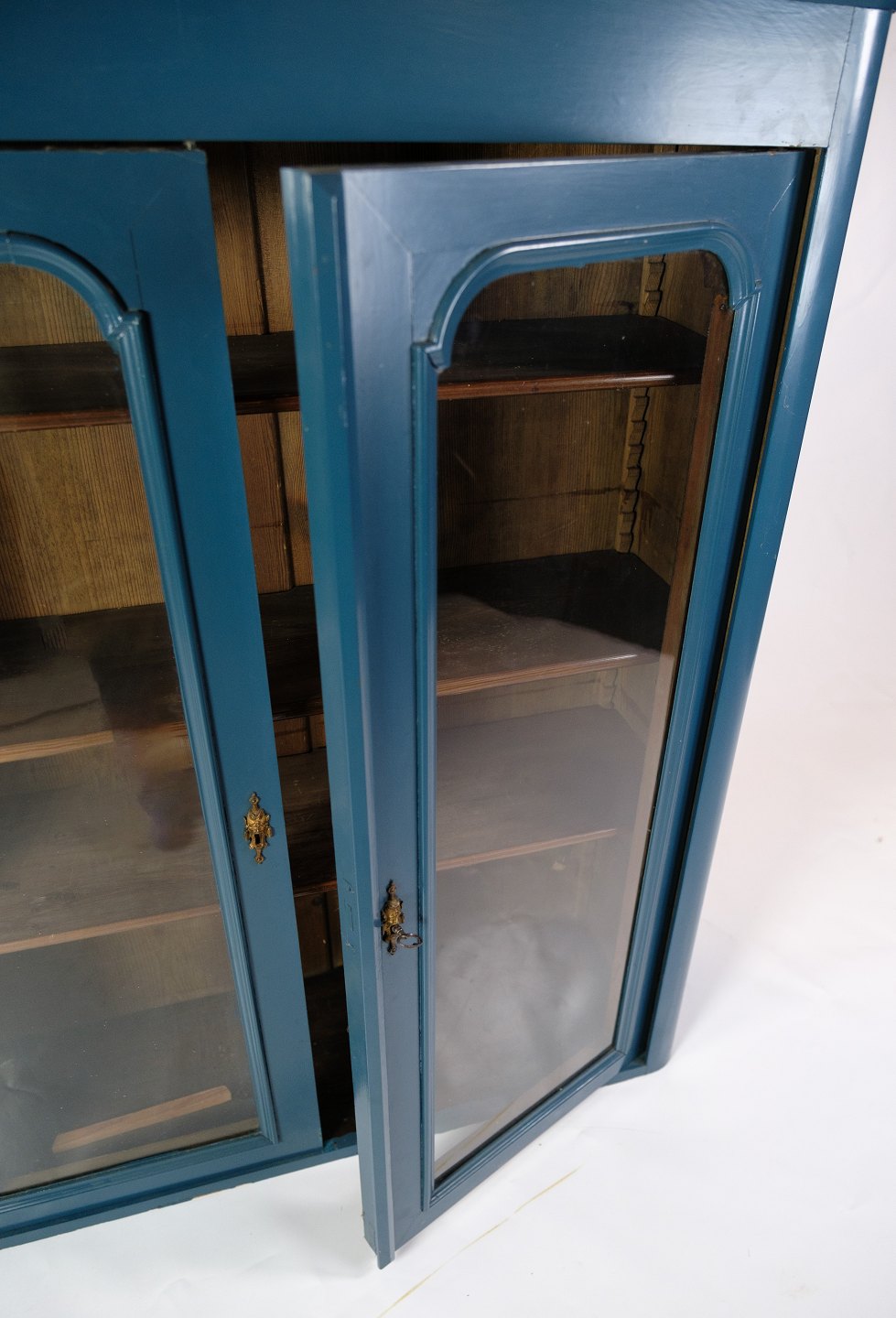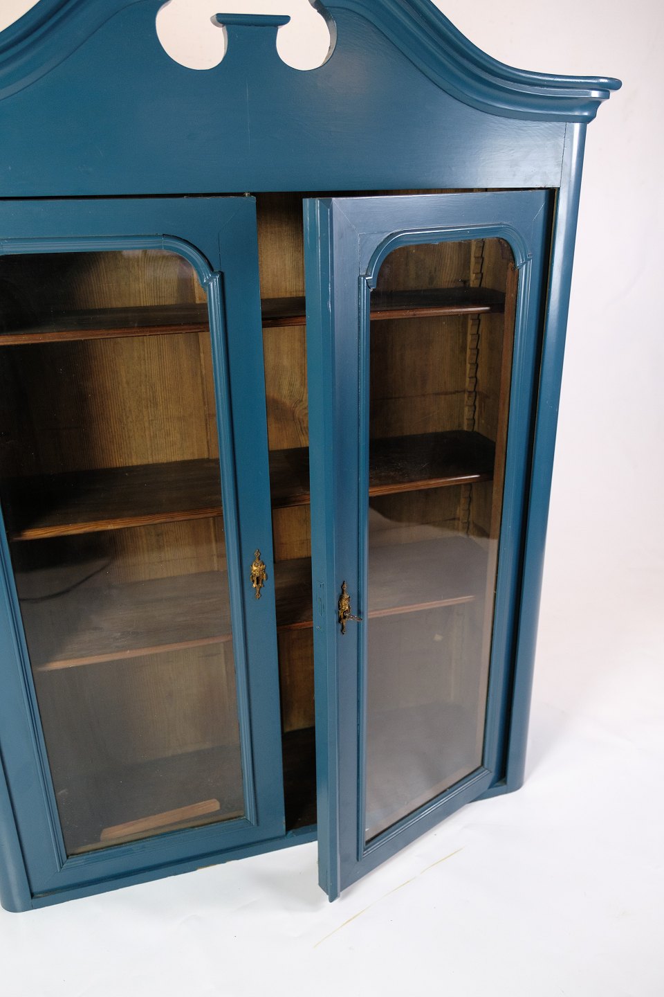 Antik Vitrineskab - Væg Hængt - Blåmalet - 4 Hylder - År 1920